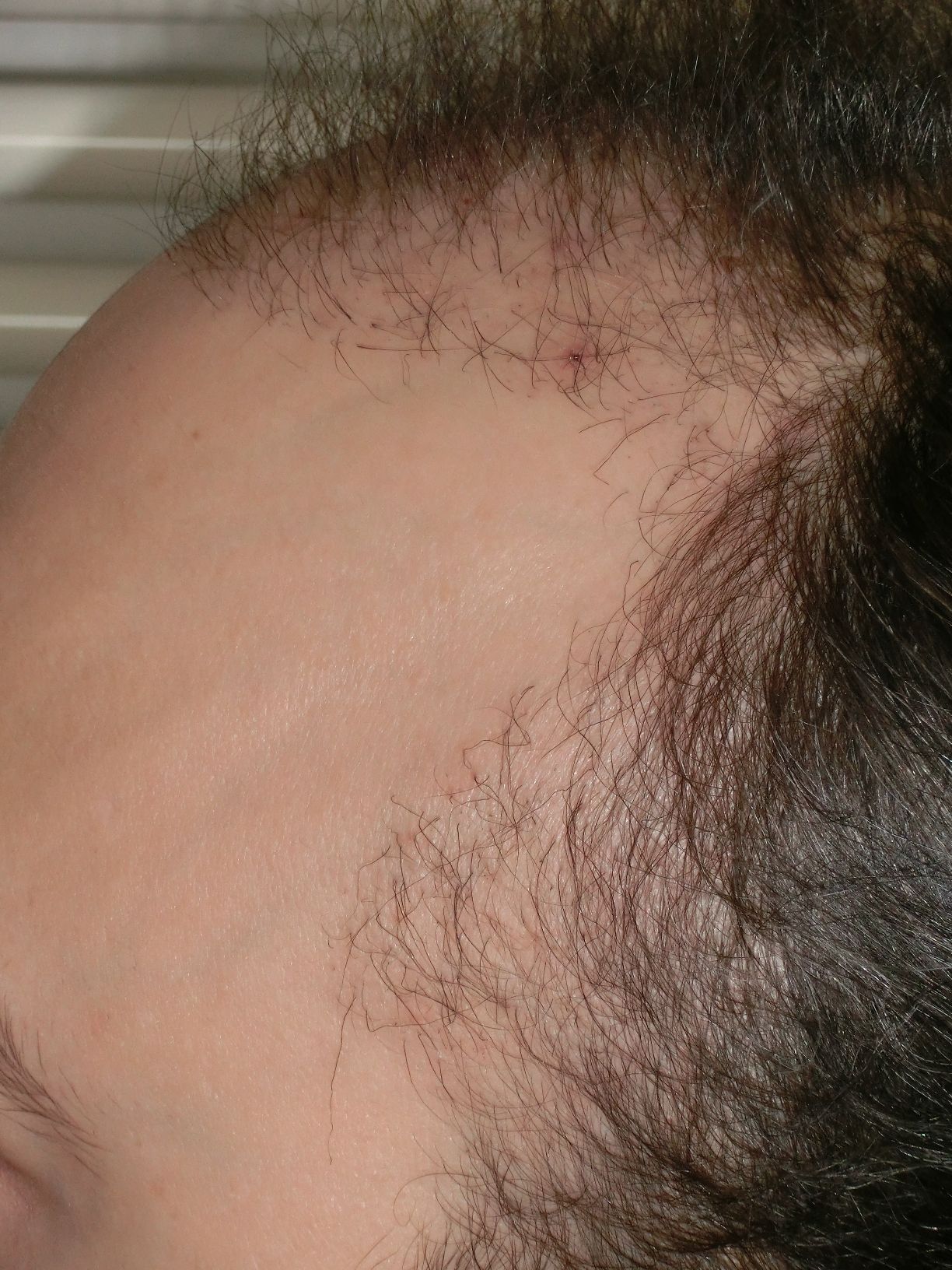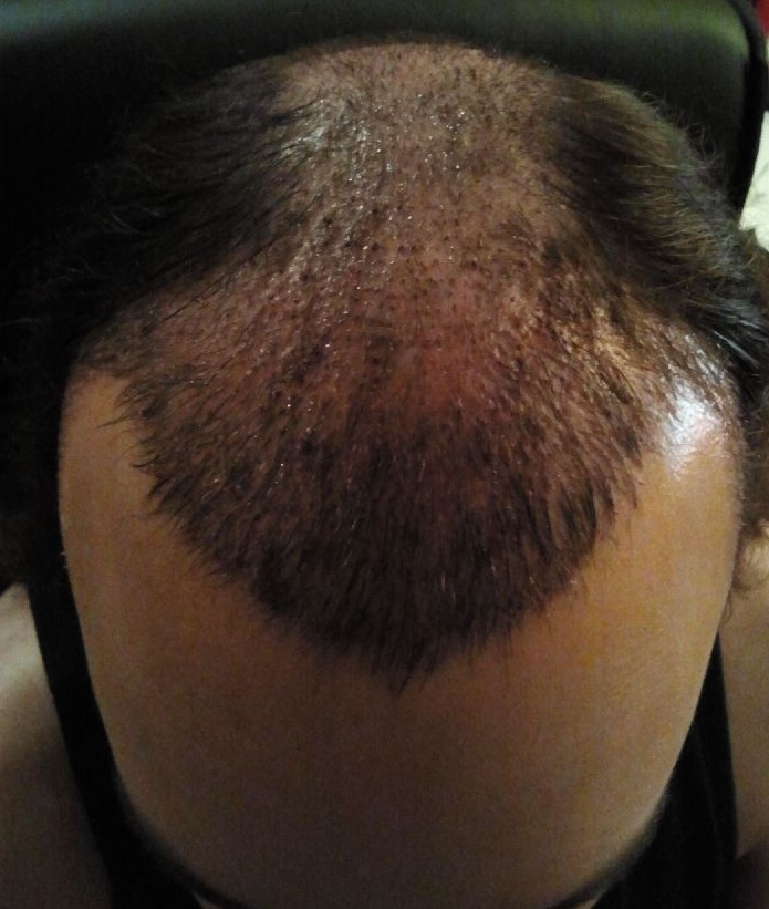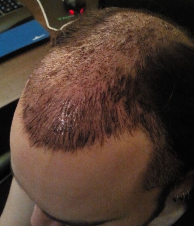 Meine Frau meint übrigens, dass die eingeplanzten Haare irgendwie wachsen würden bzw. dass es von Tag zu Tag dunkler würde - ich kanns mir nicht vorstellen. Zumal diese Haare ja bald ausfallen sollten...
