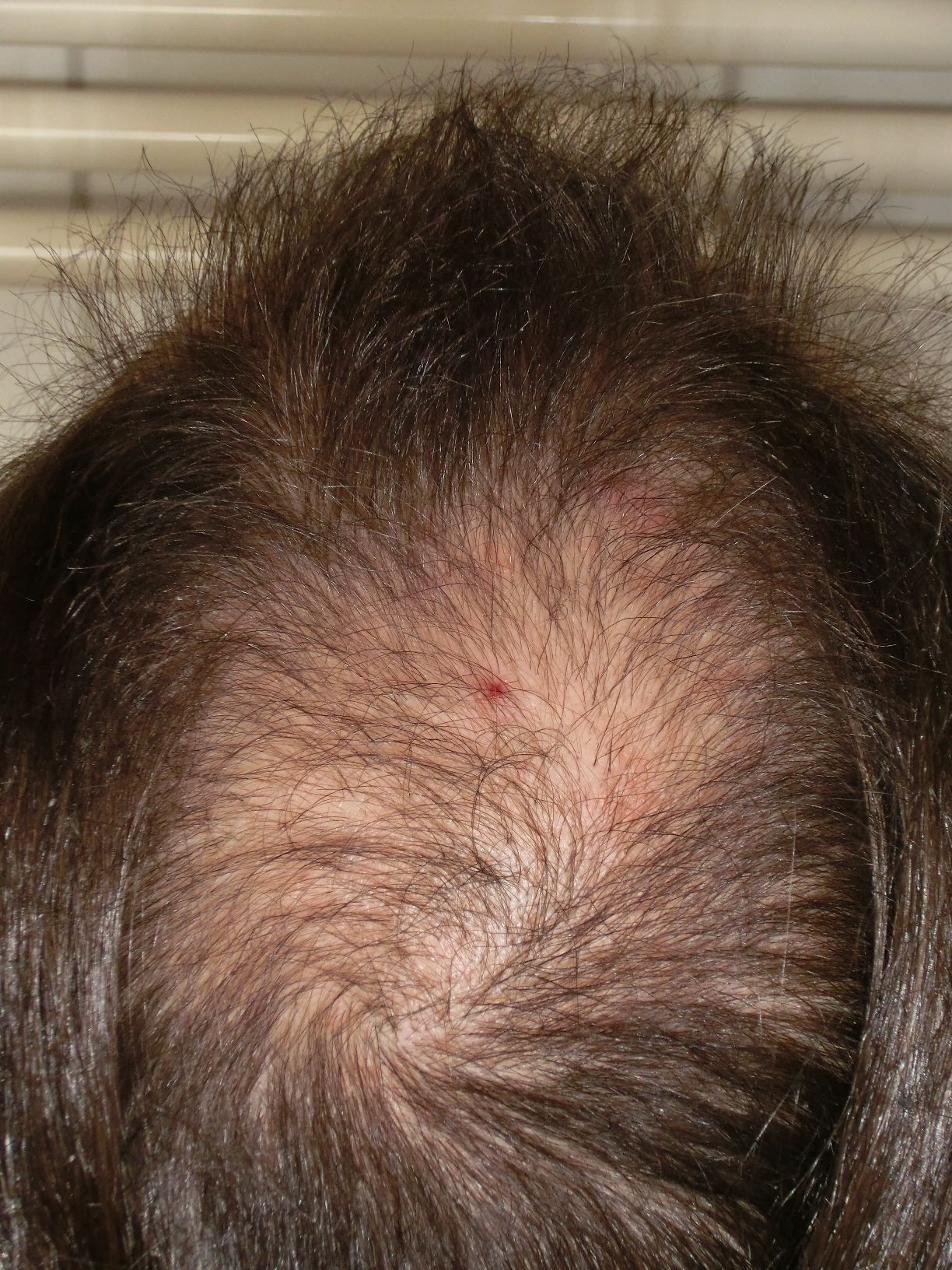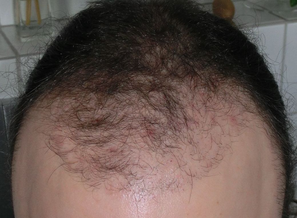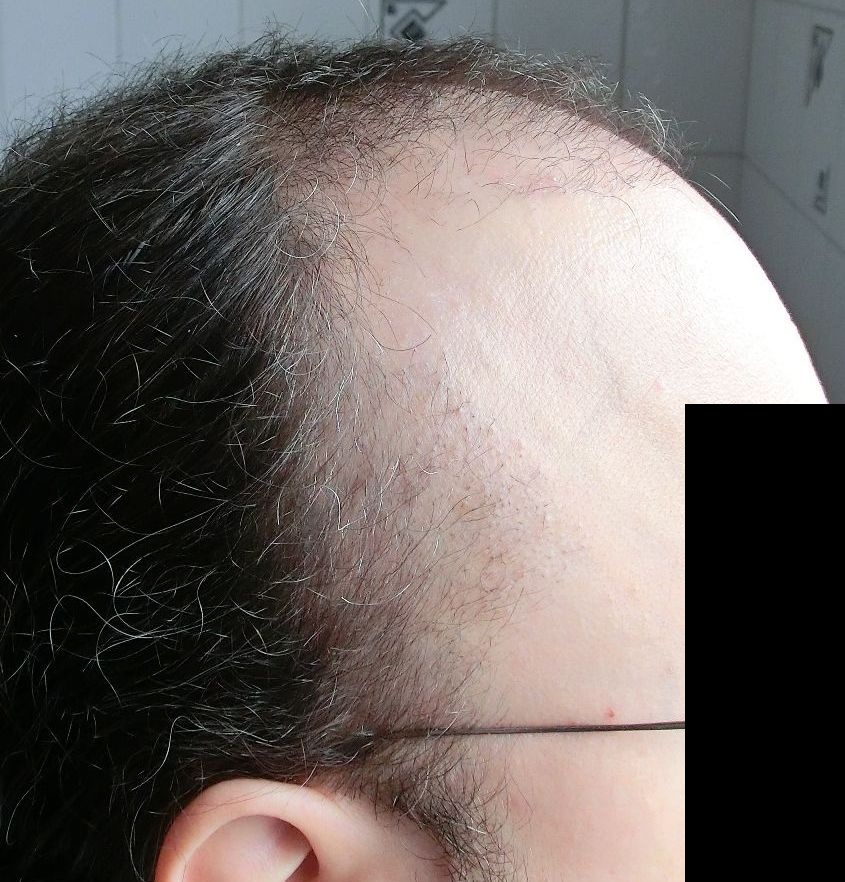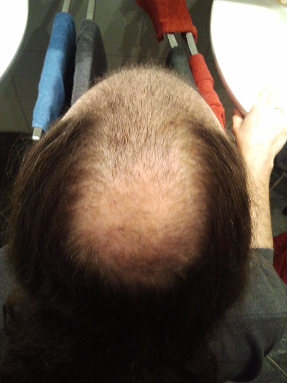 Ich bin derzeit 35 Jahre alt und habe in den vergangenen Jahren einen schleichenden Prozess der Miniaturisierung durchgemacht. Meine Stirn war zwar immer sehr hoch (familiär von klein bis groß vererbt;-), aber gerade seit den Endzwanzigern habe ich mich sehr von Norwood 2 zu 4+ hinentwickelt.