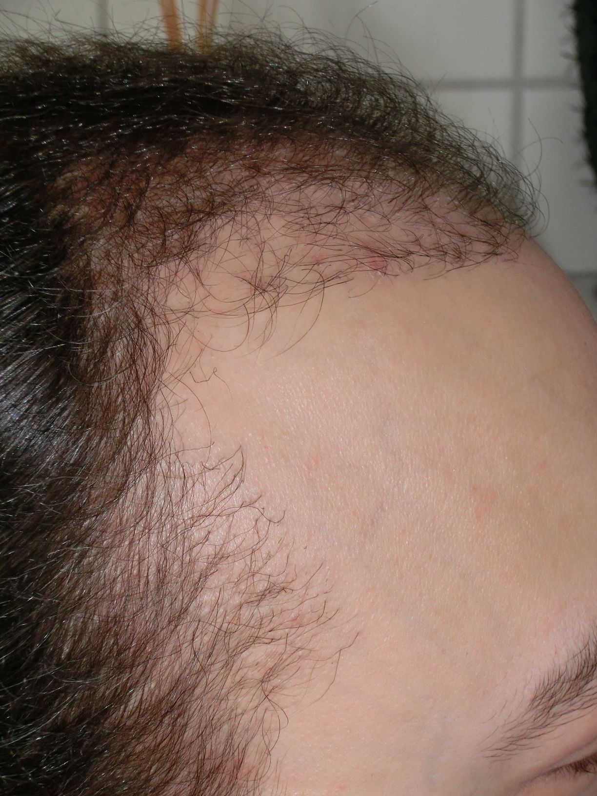 Leider ist es bei mir halt so das die Haare von der Stirn weg frontal bis zum Hinterkopf sehr sehr licht und schütter geworden sind.