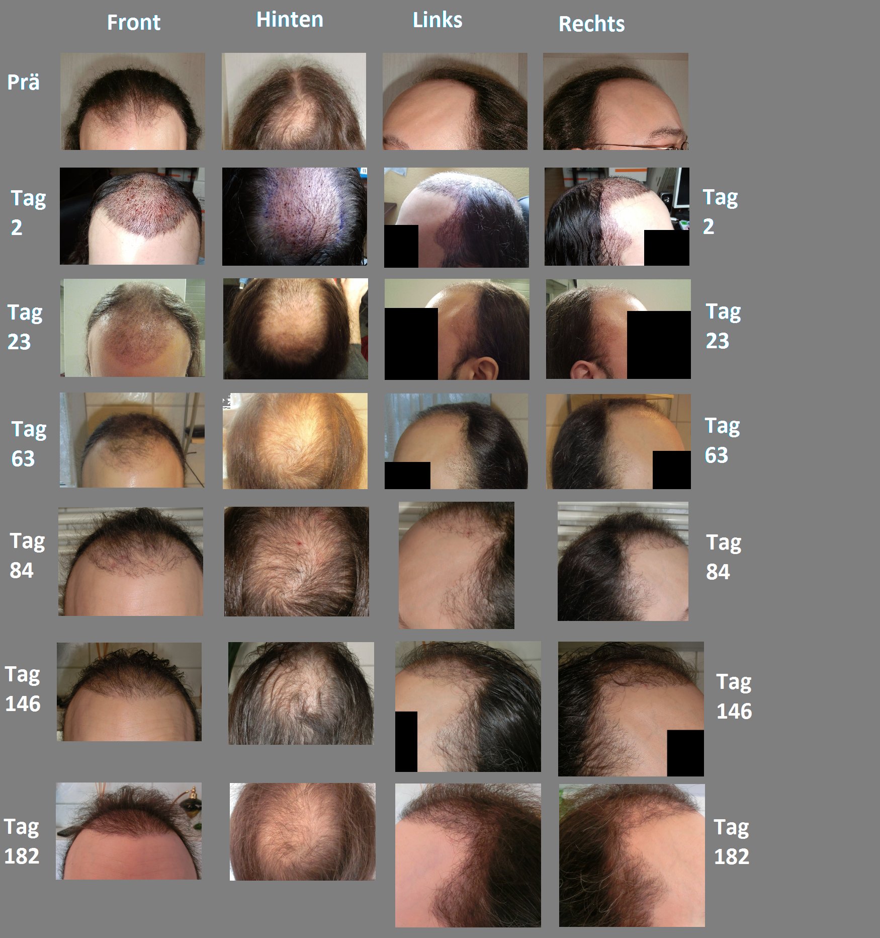 - Neulich habe ich mir ganz leicht den Kopf gestoßen und hatte das erste Mal keinen expliziten Schmerz, der im Bereich der Transplantate besonders hoch war. Vorher hatte ich, wenn mir jemand an den Kopf tippte oder ich mich gestoßen habe, immer das Gefühl eines "blauen Flecks" unter der Kopfhaut - das ist nun endlich weg.