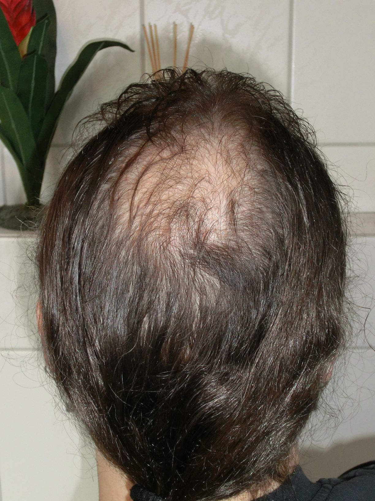 Leider ist es bei mir halt so das die Haare von der Stirn weg frontal bis zum Hinterkopf sehr sehr licht und schütter geworden sind.