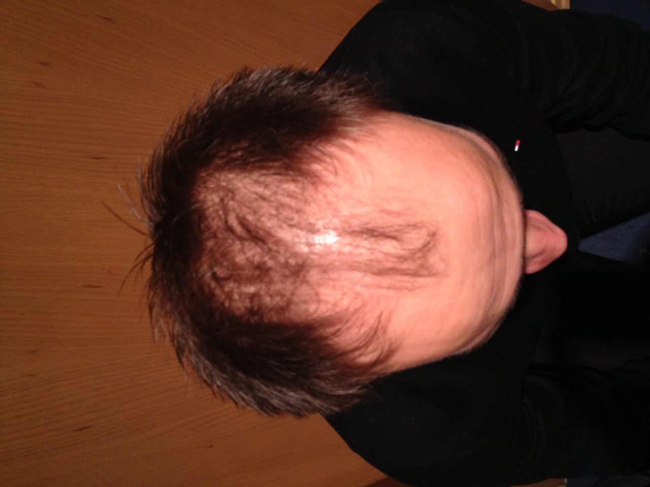 Ich nehme seit drei Jahren regelmäßig Alpecin Shampoo und Haarwasser. Minox nehme ich seit einer Woche, weil ich gemerkt habe, dass auch mein mittlerer Bereich anfängt stark licht zu werden. Eine hohe Stirn bzw. Geheimratsecken hatte ich schon immer, das noch nebenbei erwähnt.