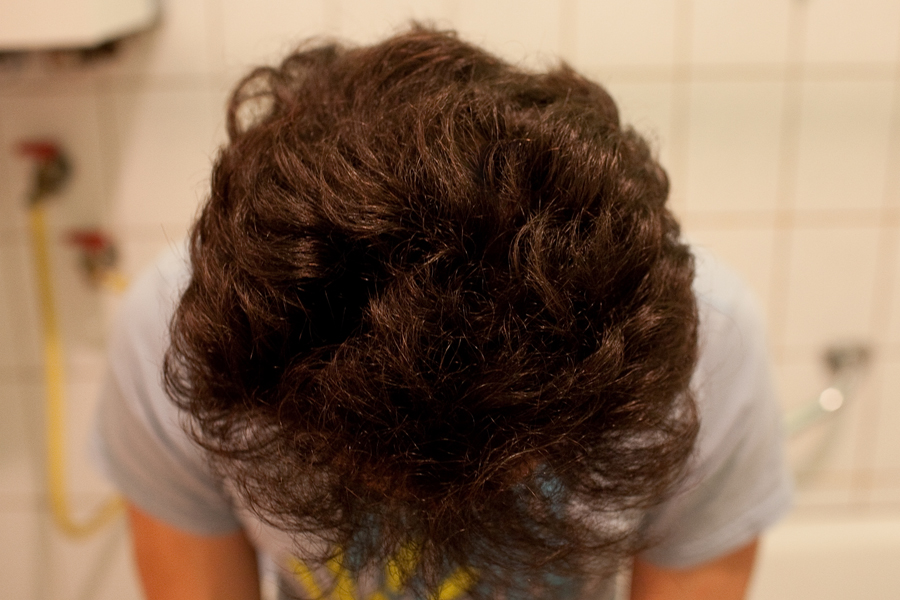Über den kompletten Kopf verteilt habe ich fast blickdichtes Haar. Man kann die Kopfhaut eigentlich nirgendwo sehen.