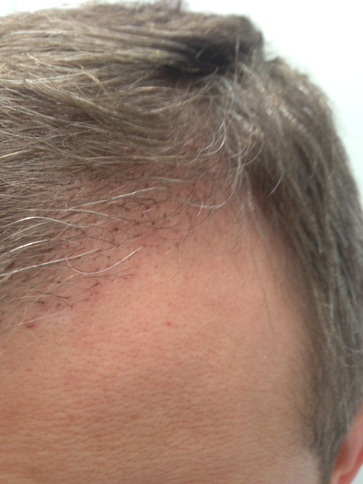 Sorry, aber du warst bei Amateuren. Wie undicht gerade in der Haarlinie gesetzt wurde, ist schlicht ein schlechter Witz. Entweder du hast zu wenig Donor, aber dann setzt man lieber gar nicht auf unbewachsenes Gebiet. Oder du hast ausreichend Donor für die Fläche, dann sollte auch eine vernünftige Dichte gesetzt werden. Bei dir sind es ja teilweise gerade mal 3-4 Grafts/cm2, das ist meiner Meinung nach fast schon ein grober Kunstfehler.