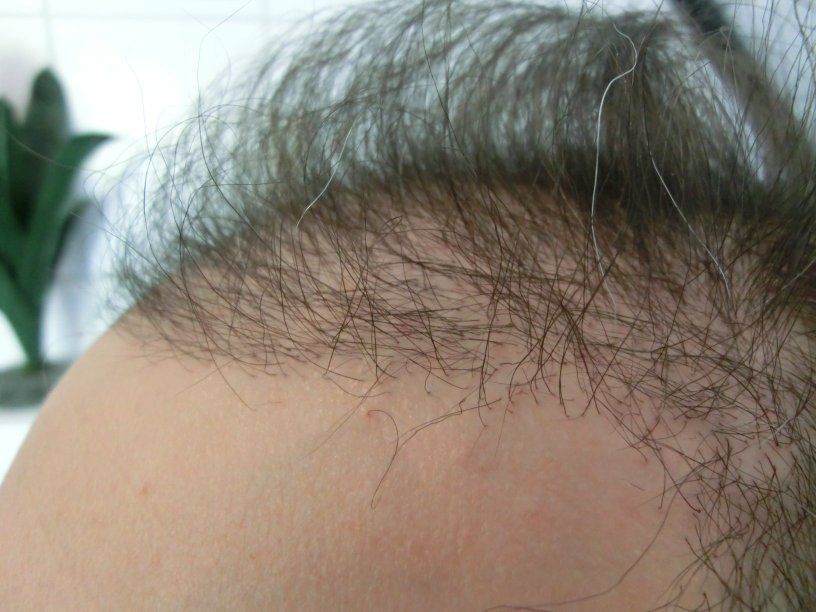 Das sieht doch schon mal gut aus! Du dürftest aber -wie ich wahrscheinlich auch- eher ein Slowgroßer sein. Man sieht, dass unter den längeren Haaren einige Stoppeln erst jetzt im Kommen sind. So gehts mir (bin in Monat 5,5) auch grade: