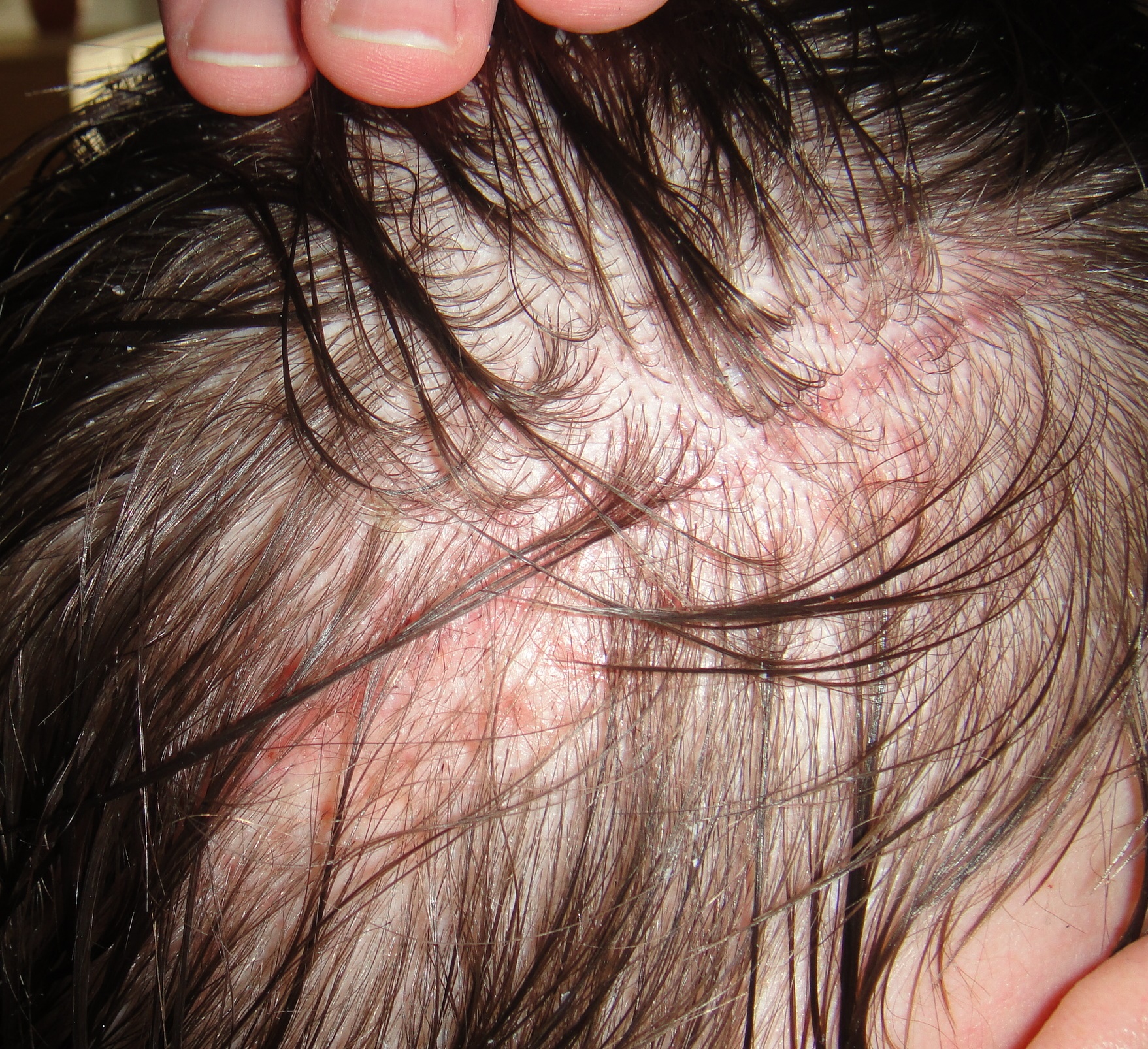 Vorn bin ich vollends zufrieden. Hautschuppen mit dünnen, unpigmentierten Haaren habe ich keine mehr. Gegenwärtig sieht es so aus, dass noch einige Haare erst vor ein paar Wochen neu gewachsen sind (sind kurz und wellig) und somit das Endergebnis in ca. zwei Monaten erreicht werden sollte.