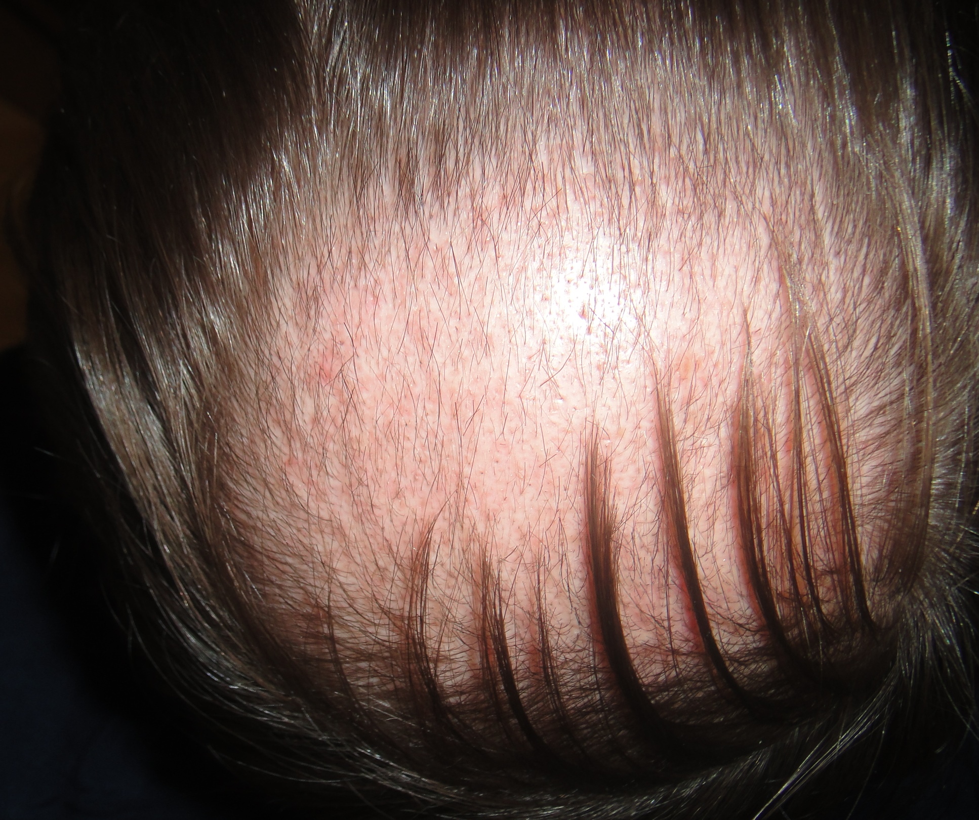Vor der OP habe ich nichts genommen. Seit der OP nehme ich Minox (erst 2%, seit ein paar Wochen 5%). Ich hatte am Anfang recht viele Schuppen davon bekommen, so dass ich es fast absetzen wollte. Nach ein paar Monaten ist das Problem jedoch verschwunden.