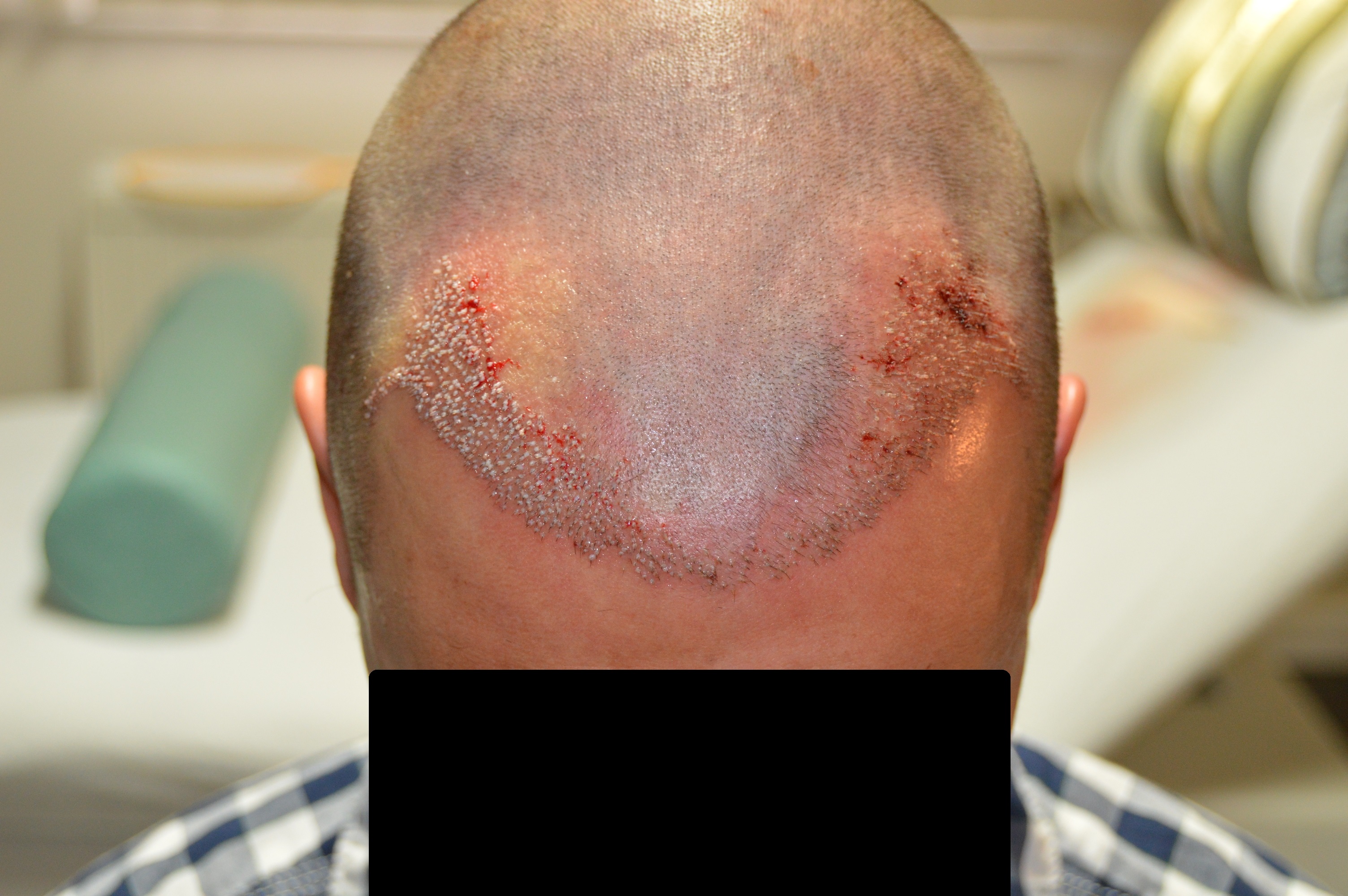 also im frontbereich hätteste deine haare nicht rasieren müssen...das wäre auch so gegangen, wenn du den doc gefragt hättest, da die transplantionsfläche ja frei von haaren war. für den doc aber einfacher zu transpantieren