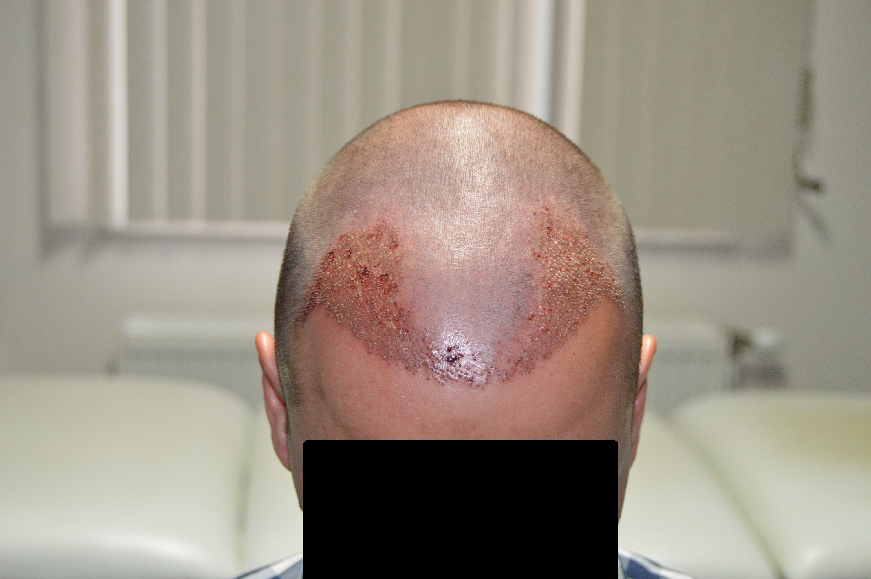 also im frontbereich hätteste deine haare nicht rasieren müssen...das wäre auch so gegangen, wenn du den doc gefragt hättest, da die transplantionsfläche ja frei von haaren war. für den doc aber einfacher zu transpantieren