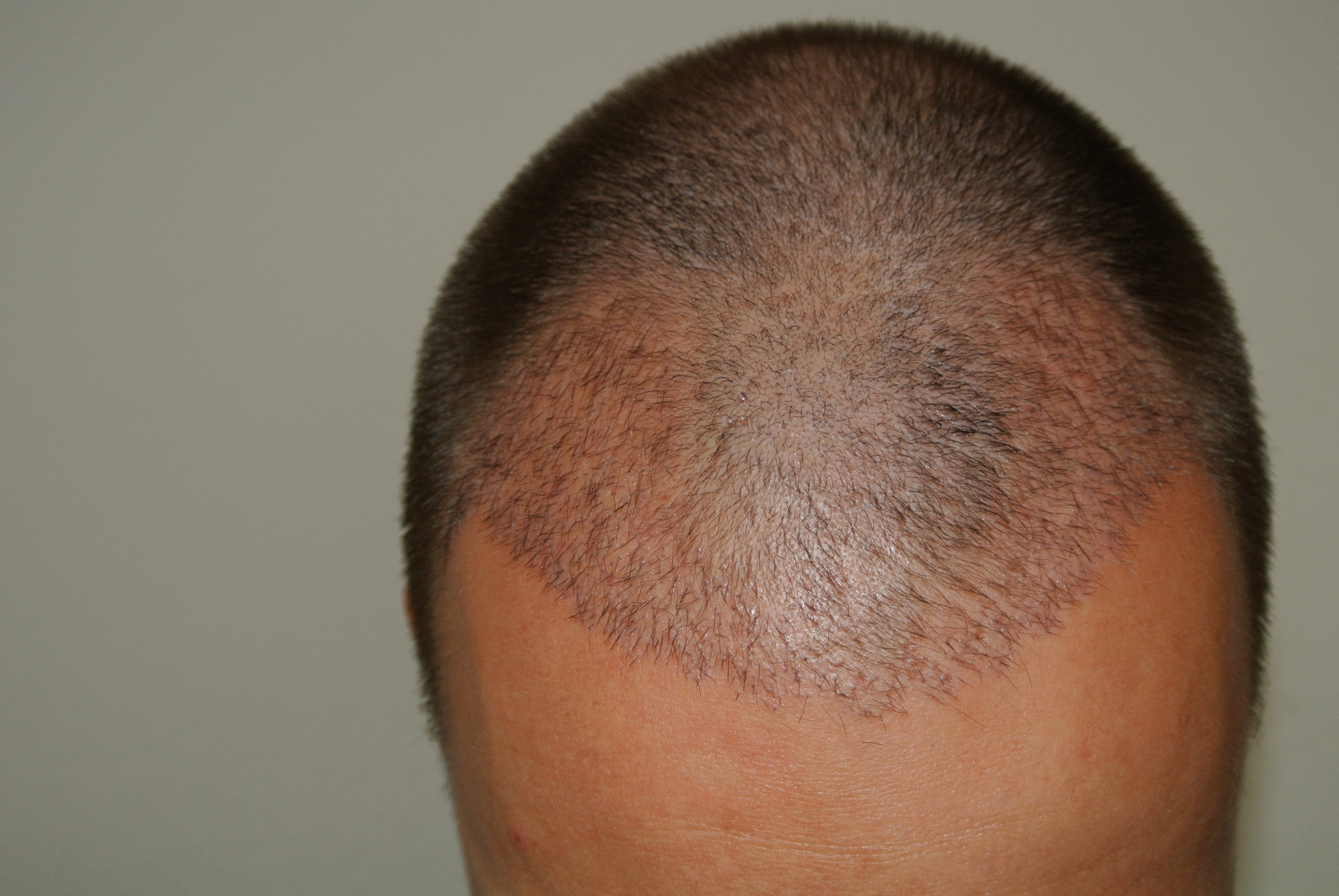 Die ersten Haare kommen wieder durch. Sie sind allerdings noch sehr fein und lassen sich nur schwer von der Kamera erfassen. Grundsätzlich bin ich mit der Entwicklung aber gut zufrieden. Nachdem die Haare zunächst drei Wochen nach der HT ausgefallen waren, war der Fortschritt seitdem erwartet langsam. In den letzten drei Wochen ging es dann wirklich los. Ich hatte in der Zwischenzeit etwa 2 kleine Pickelchen, wo sich die neuen Wurzeln entzündet haben. Alles in allem aber harmlos.