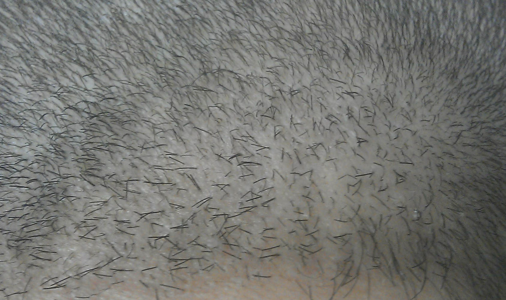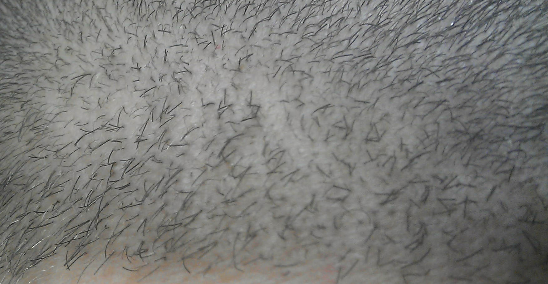 Ich erkläre mir dieses unregelmäßige Anwuchsverhalten mit Entnahmeproblemen, die mal stärker, mal weniger stark ausgeprägt waren. Dabei sind wohl viele Grafts auf der Strecke geblieben :/.
