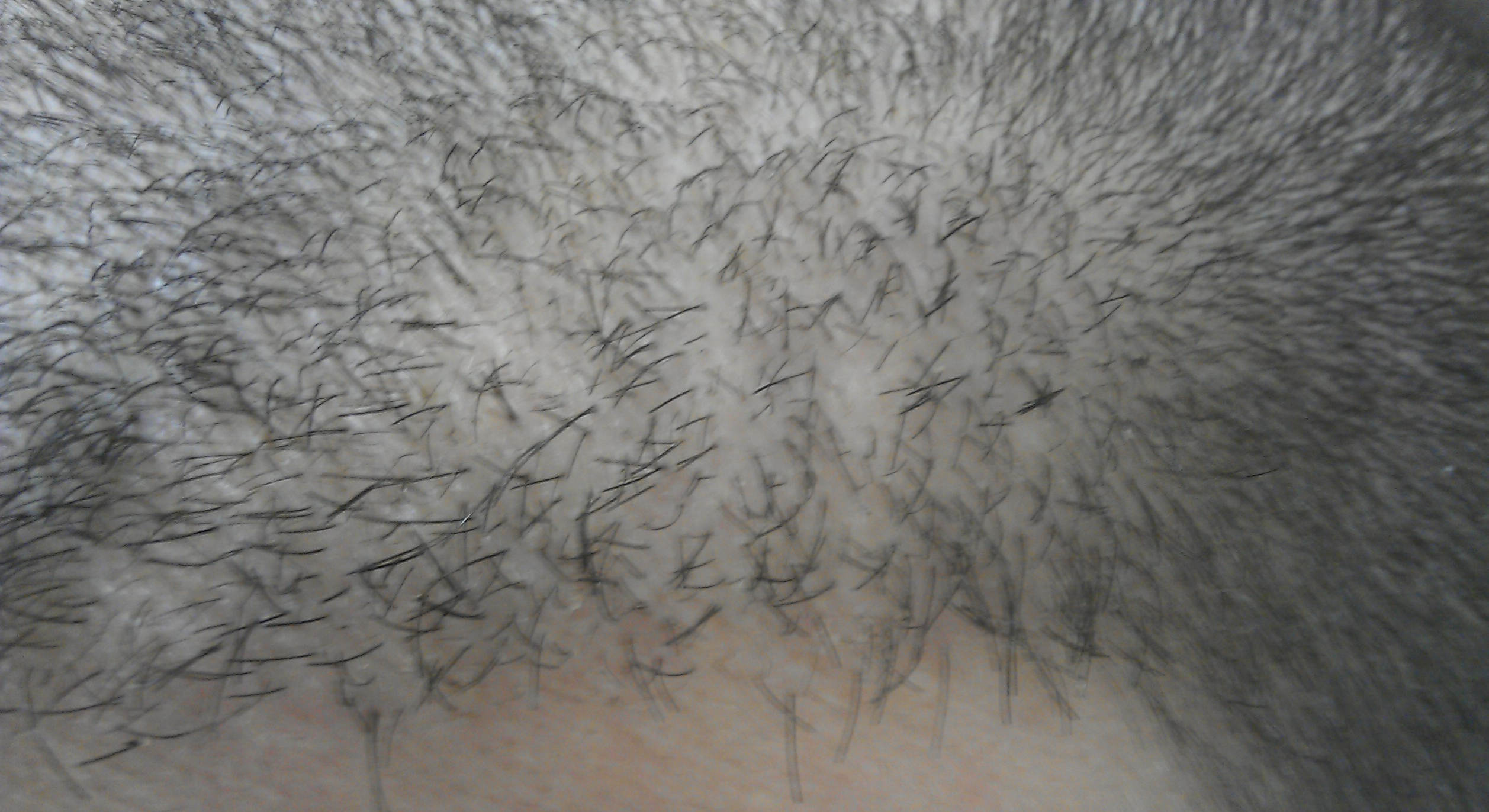 Woher die hohe Dichte in diesem Bereich kommt, weiß ich auch nicht. So sieht man den Übergang von alten zu neuen Haaren nochmal stärker...