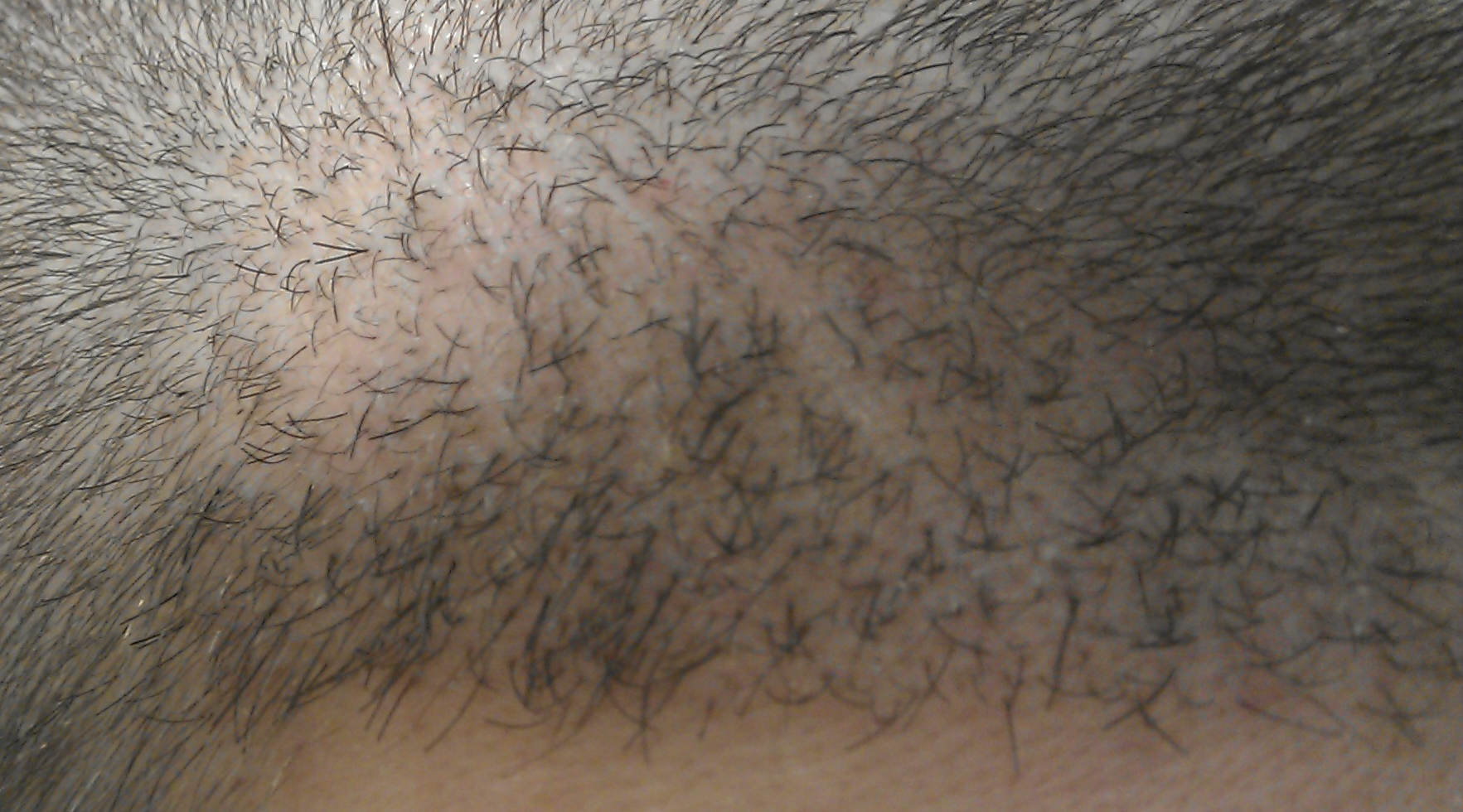 Ich erkläre mir dieses unregelmäßige Anwuchsverhalten mit Entnahmeproblemen, die mal stärker, mal weniger stark ausgeprägt waren. Dabei sind wohl viele Grafts auf der Strecke geblieben :/.
