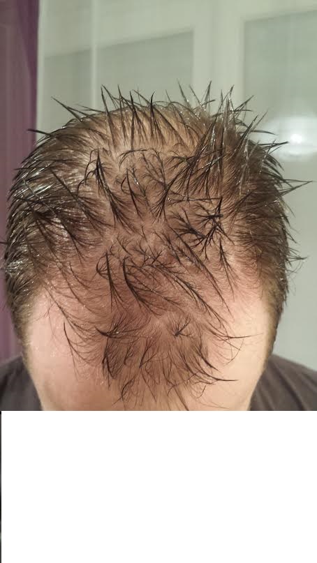 Ich bin jetzt 29 Jahre alt. Das Problem mit dem Haarausfall fing bei mir so vor 3 Jahren an. Die Haare fingen am gesamten Oberkopf an auszufallen.