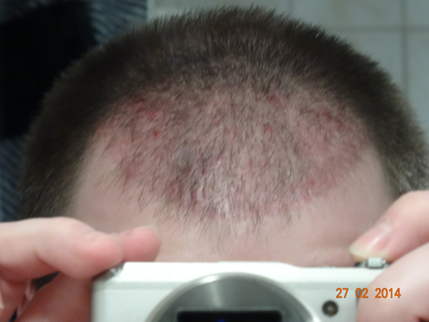 Kann es sein, dass Du irgendeine Psoriasis oder allergische Reaktionen hast? Hast Du bereits früher an anderer Stelle Hautprobleme gehabt? Ich vermute mal, dass Du noch kein Minox nach der HT nimmst, oder? Das kann durchaus zu Problemen führen. Ich hatte vor meiner allerersten HT Minox über 15 Jahre genommen und dauerhafte Probleme wegen des Propylenglykolgehalts.