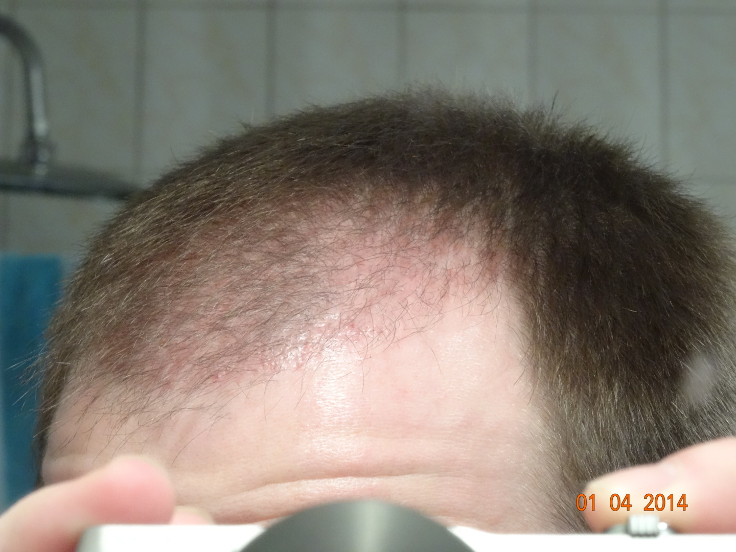 Ist zwar noch nicht ganz weg aber deutlich besser. Was es nun war kann ich nicht sagen. Es hatte jedenfalls bisher keinen Einfluss auf die dort eingesetzten Haare, die sind nämlich noch da. Der Haarausfall ist aber langsam schon zu merken und an einigen Stellen ist es schon wieder lichter geworden.