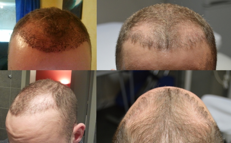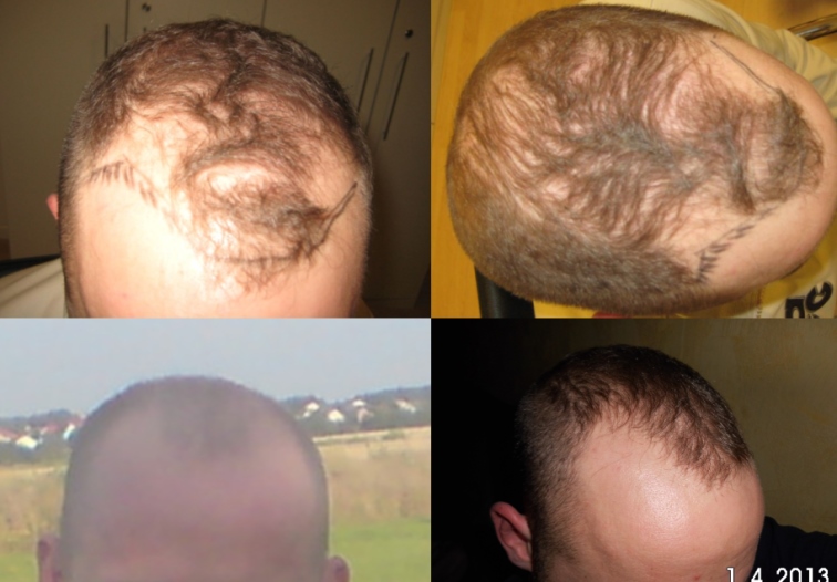 Das obere linke Foto enstand direkt einen Tag nach der Behandlung (Februar 2013), die anderen Fotos enstanden 9 Monate nach der Haartransplantation bei Medical One diese von Facharzt Andreas Meisen durchgeführt wurde. Es ist deutlich zu erkennen das mit 800 Grafts viel zu wenig Grafts verpflanzt wurden. Die Anwuchsrate war allerdings gut, der Arzt durfte am Tag der OP nur die, mit der Beraterin vorher vereinbarten, 800 Grafts verpflanzen. Der Preis dafür lag bei 3700€ und ich musste mir selber ein Hotel suchen welches ich natürlich extra bezahlen musste. Ich gebe zu das ich vorher schlecht informiert war und mich nur auf die Werbung und Beratung bei Medical One verlassen habe. Die ersten Treffer bei Googel über Haartransplantation führten mich direkt zu Medical One. Ich merkte schon nach wenigen Monaten das ich dringend eine Nachbehandlung benötige, ich habe dann nach seriösen Communitys gesucht und bin so an dieses Forum (Alopezie.de) gekommen. Ich bin hier eine ganze Ecke schlauer geworden und ich wurde gut beraten um meinen nächsten Schritt etwas sorgfältiger und intelligenter planen zu können.