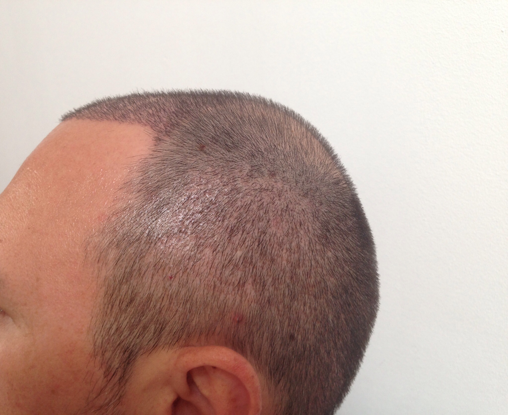 Aber dennoch hier 2 Fotos. Muss dazu sagen ich war schon 2 mal beim Frisör um die Konturen etwas zu kürzen damit es nicht ganz so scheisse ausschaut. Aktueller Haarschnitt ist 3 mm. Auf den Fotos kann man leicht die Entnahme Stelle sehen was in natura nicht der fall ist. Mein Frisör staunt nur noch Smile