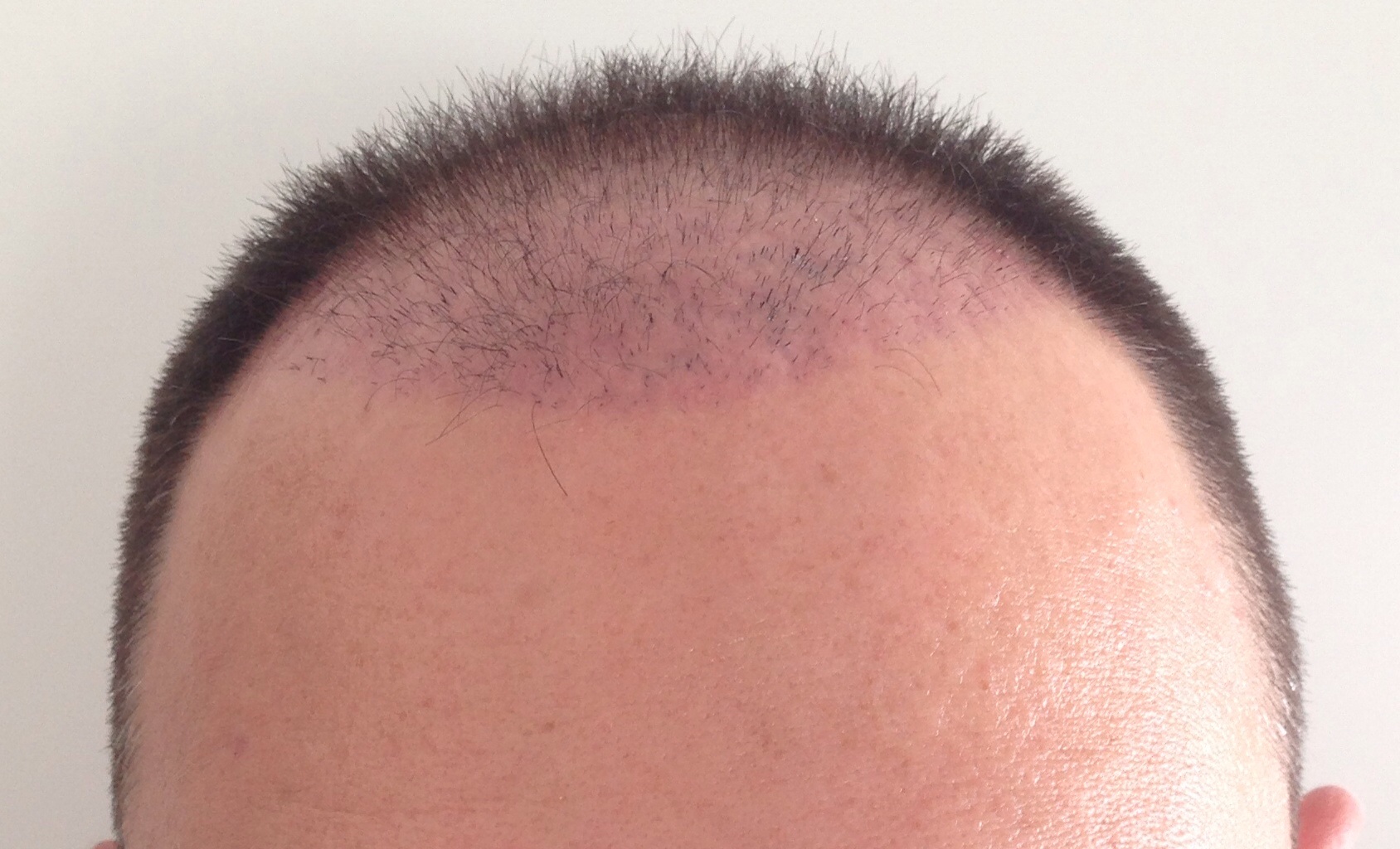 Also die kurzen Haare die man sieht sind die eingepflanzten Haare die nicht ausgefallen sind. Das neue Haar hat sich anscheinend einen neuen Weg gesucht. Wie man auch auf dem Bild sehen kann hat der Haarwachstum vor 2 Wochen wieder begonnen. Man sieht auch hier einige ganz kurze, entweder neues Haar oder wenige noch drinsteckende Haare die noch von der Entnahmestelle stammen. Die fallen alleine nicht mehr aus aber und an fallen diese beim Haarewaschen aus. Wenn ich diese mit einer Pinzette herausziehe dann kommt das Haar heraus wie abgeschnitten ohne Wurzel. Dieses ziept auch nicht und ist ohne jeglichem Wiederstand zu entfernen. Ich lasse diese aber stecken und lasse sie selbst ausfallen. Sicher ist sicher.