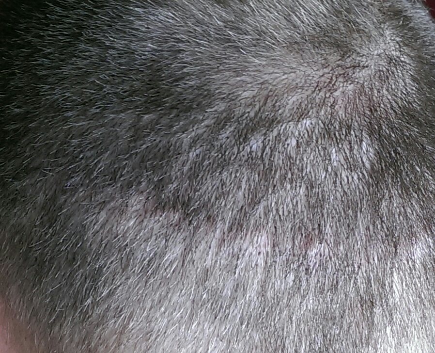 Die Haare kann ich hinten auf 7 mm kürzen ohne dass die Narbe auch nur ansatzweise ein Anzeichen gibt.
