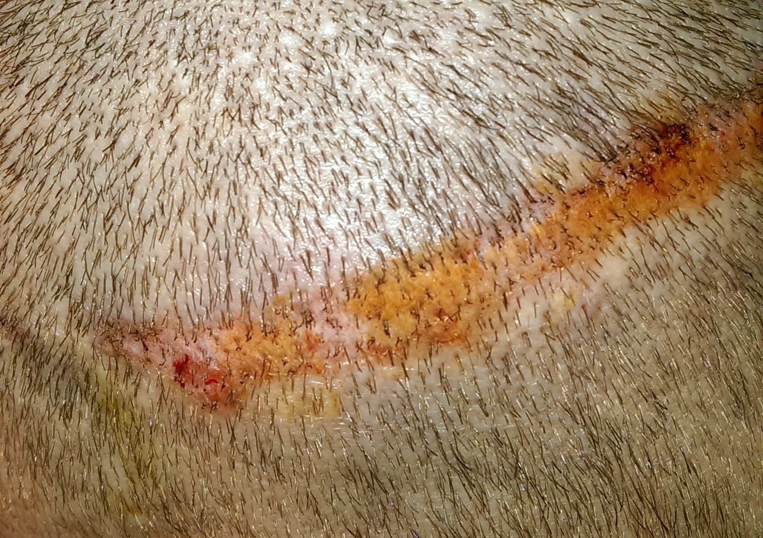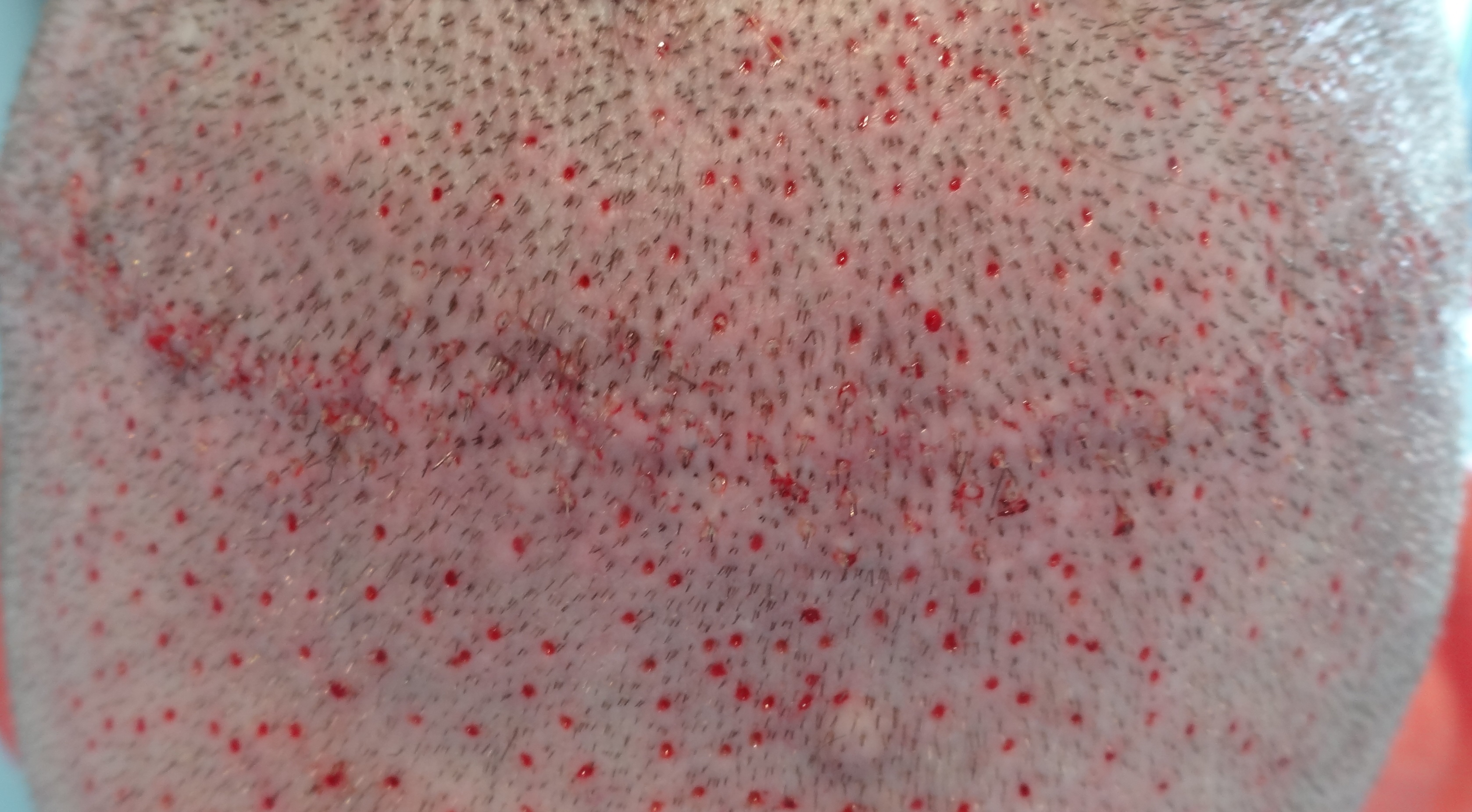 Mit der Narbe hatte ich keinerlei Probleme, da die Haut sich immer wieder gut regeneriert hat. Ich hätte sogar noch die Möglichkeit gehabt, nen max-Strip von 3000 grafts entnehmen zu lassen. Nachdem ich aber weg möchte von dieser Technik (weil es doch sehr einschränkt), habe ich mich entschlossen, die Narbe so gut wie möglich "verschwinden" zu lassen. Aus meiner familiären Situation weiß ich, dass ich wohl nie über NW4 kommen werde und daher die FUE Variante mir genügen Grafts für eine Verdichtung liefert.