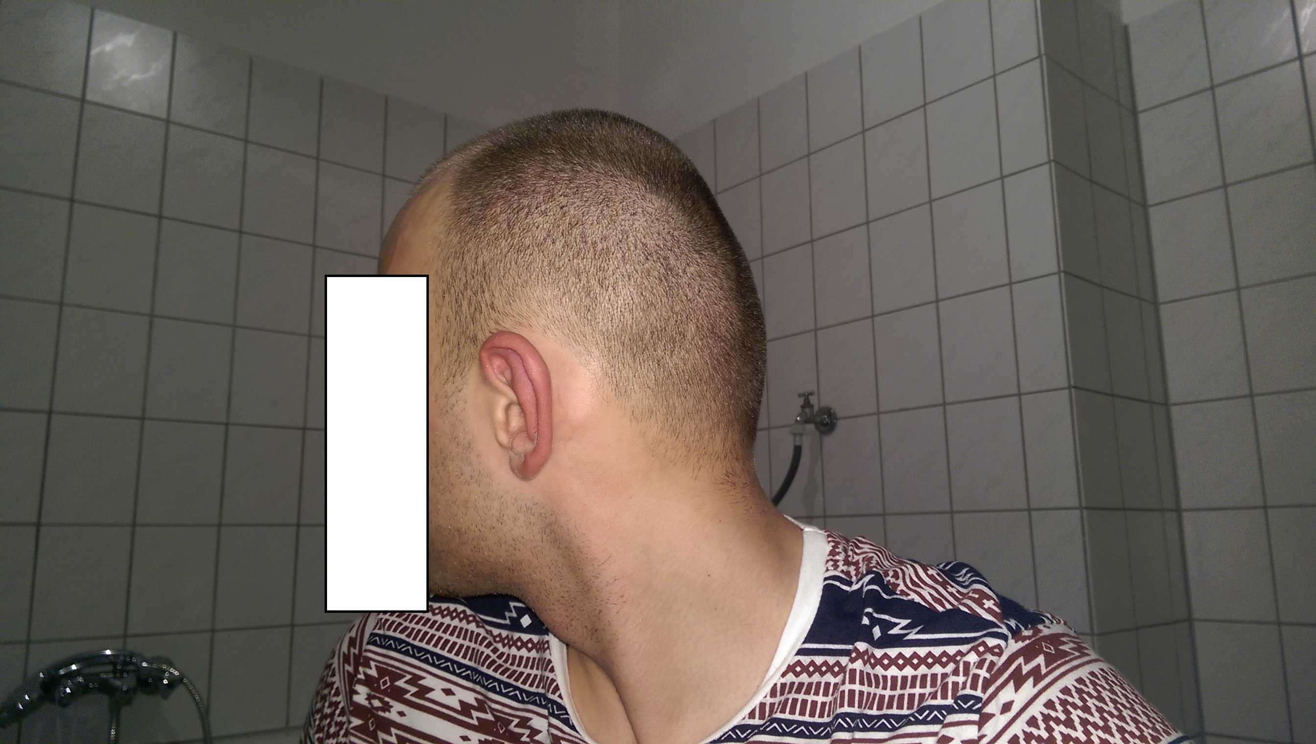 Sieht der Donor wirklich so schlecht aus? Glaube dass liegt eher dran, dass die Haare ziemlich kurz sind und wegen dem starken Blitzlicht.