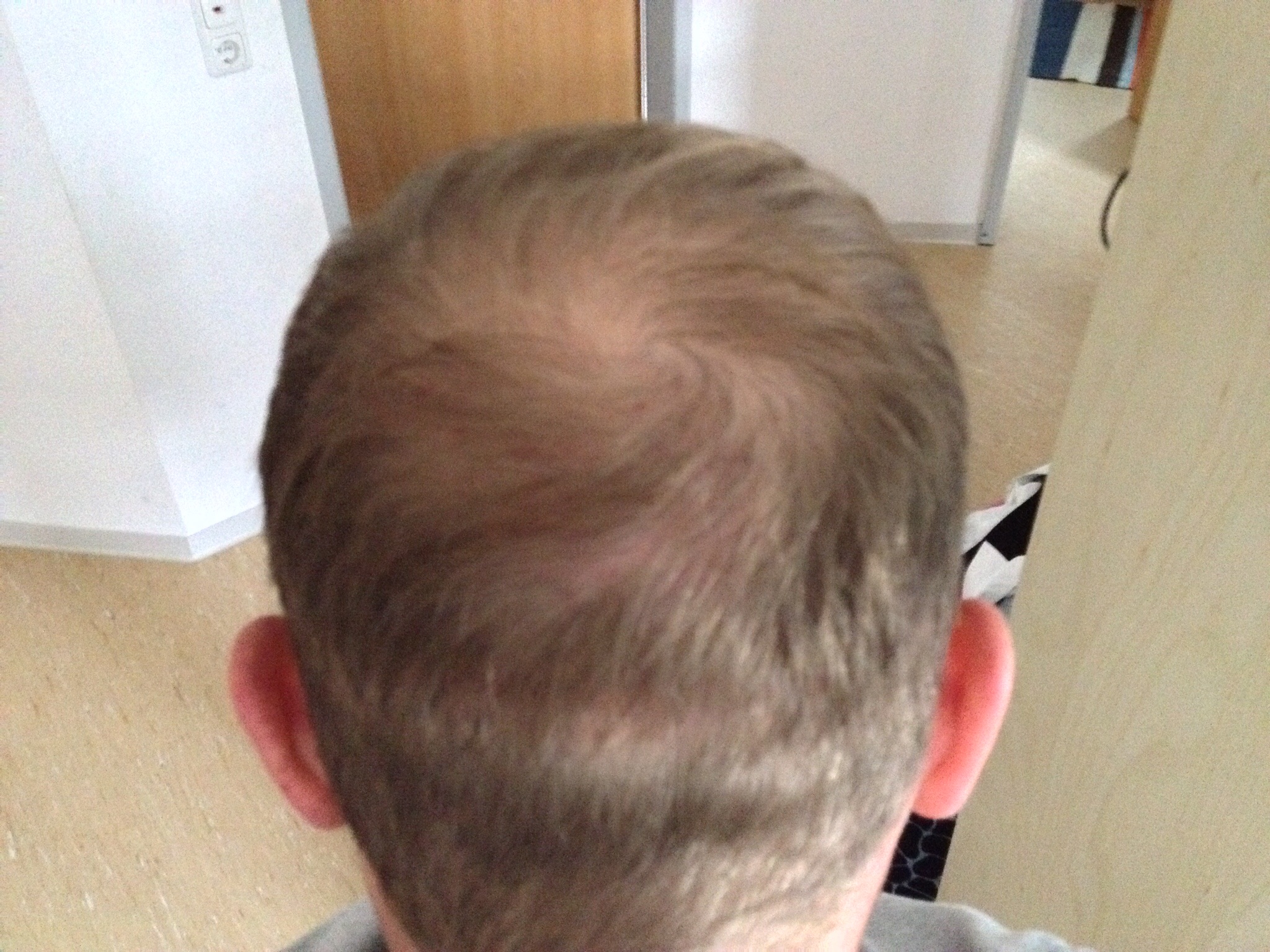 Getan hat sich bislang allerdings herzlich wenig.... um genau zu sein, fast NIX! Bisher kann ich am Oberkopf nur hauchdünne Haare erblicken, diese allerdings nur bei genauem hinsehen... wenn ich mich also im Spiegel ansehe, sehe ich null Verbesserung bisher.