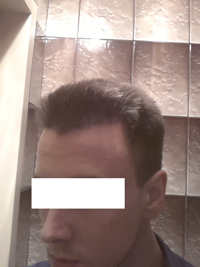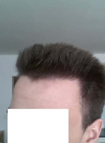Jedoch ist mein oberer Kopfbereich ein wenig dünner als mein Donor, was ein weniger gutes Zeichen ist. Es ist aber soweit noch alles dicht und eine Tonsur habe ich auch nicht.