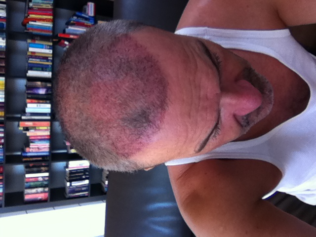 Besonders kahl waren bei mir Geheimratsecken (besonders rechts) und die Tonsur war komplett kahl.