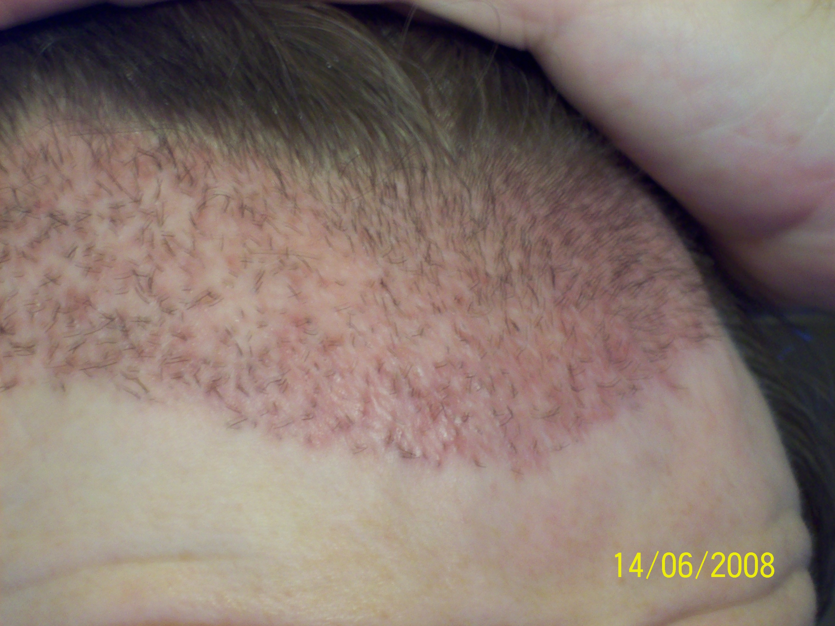 Ich hatte letzte Woche E-Mail-Kontakt mit Dr Rahal. Außerdem habe ich ihm die gleiche Fotos geschickt, die ich hier hochgeladen habe. Er sagte, daß es auch einige Fälle gibt, bei denen die Röte noch länger angedauert hat, vor allem bei hellen Hauttypen. Er meint aber auch, daß der Rogaine-Schaum wohl ursächlich dafür sei. Über den Stand des Haarwachstums hat er nicht viel gesagt.