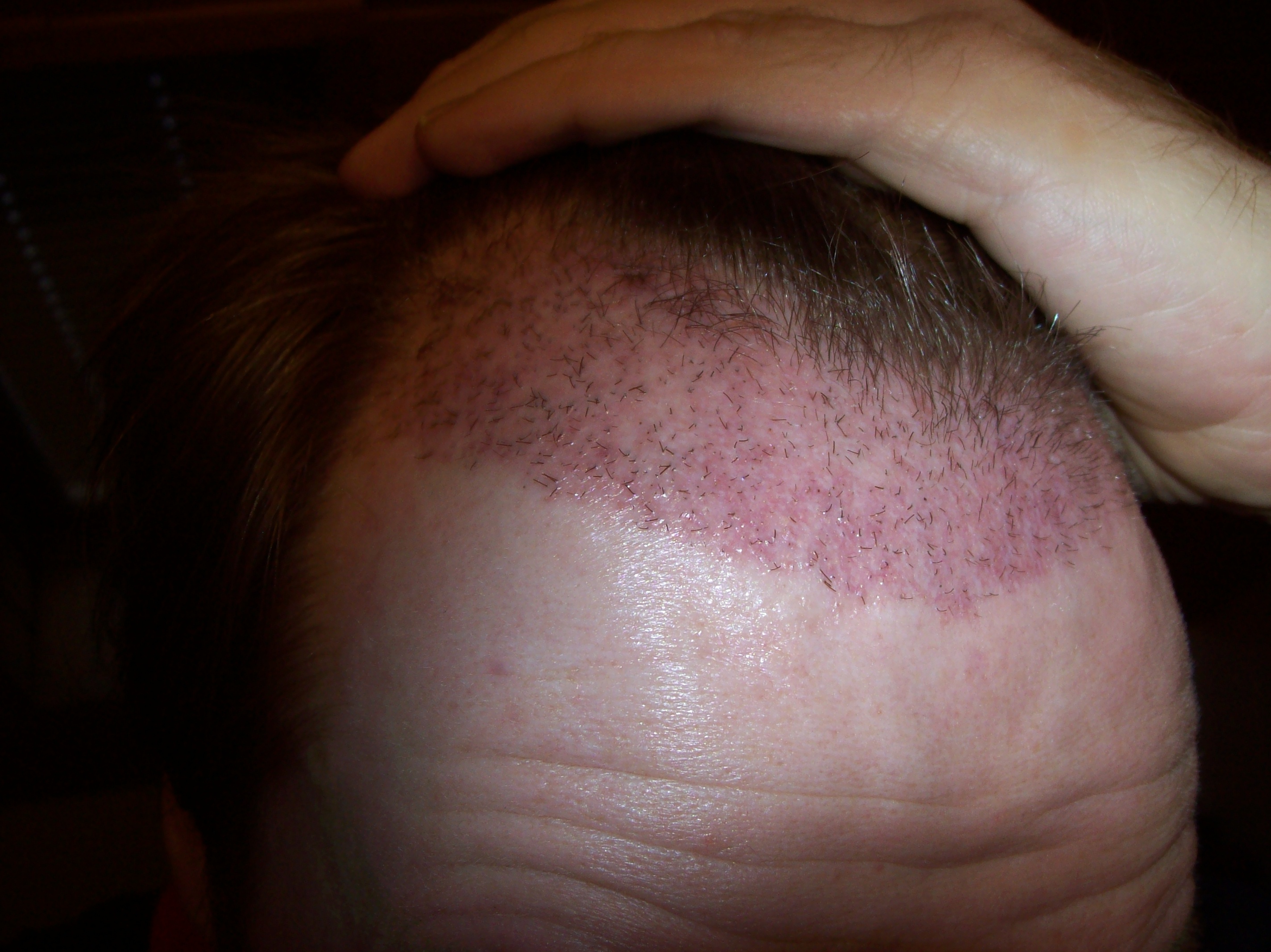 Ich hatte letzte Woche E-Mail-Kontakt mit Dr Rahal. Außerdem habe ich ihm die gleiche Fotos geschickt, die ich hier hochgeladen habe. Er sagte, daß es auch einige Fälle gibt, bei denen die Röte noch länger angedauert hat, vor allem bei hellen Hauttypen. Er meint aber auch, daß der Rogaine-Schaum wohl ursächlich dafür sei. Über den Stand des Haarwachstums hat er nicht viel gesagt.