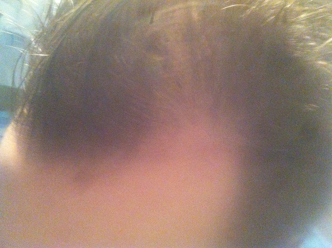 Das sieht mir nach einem langfristigen NW4 bis NW5 Fall aus, da der mittlere Teil des Oberkopfes bereits auszudünnen scheint - das sollte schon bei einer weiteren Planung mit berücksichtigt werden.