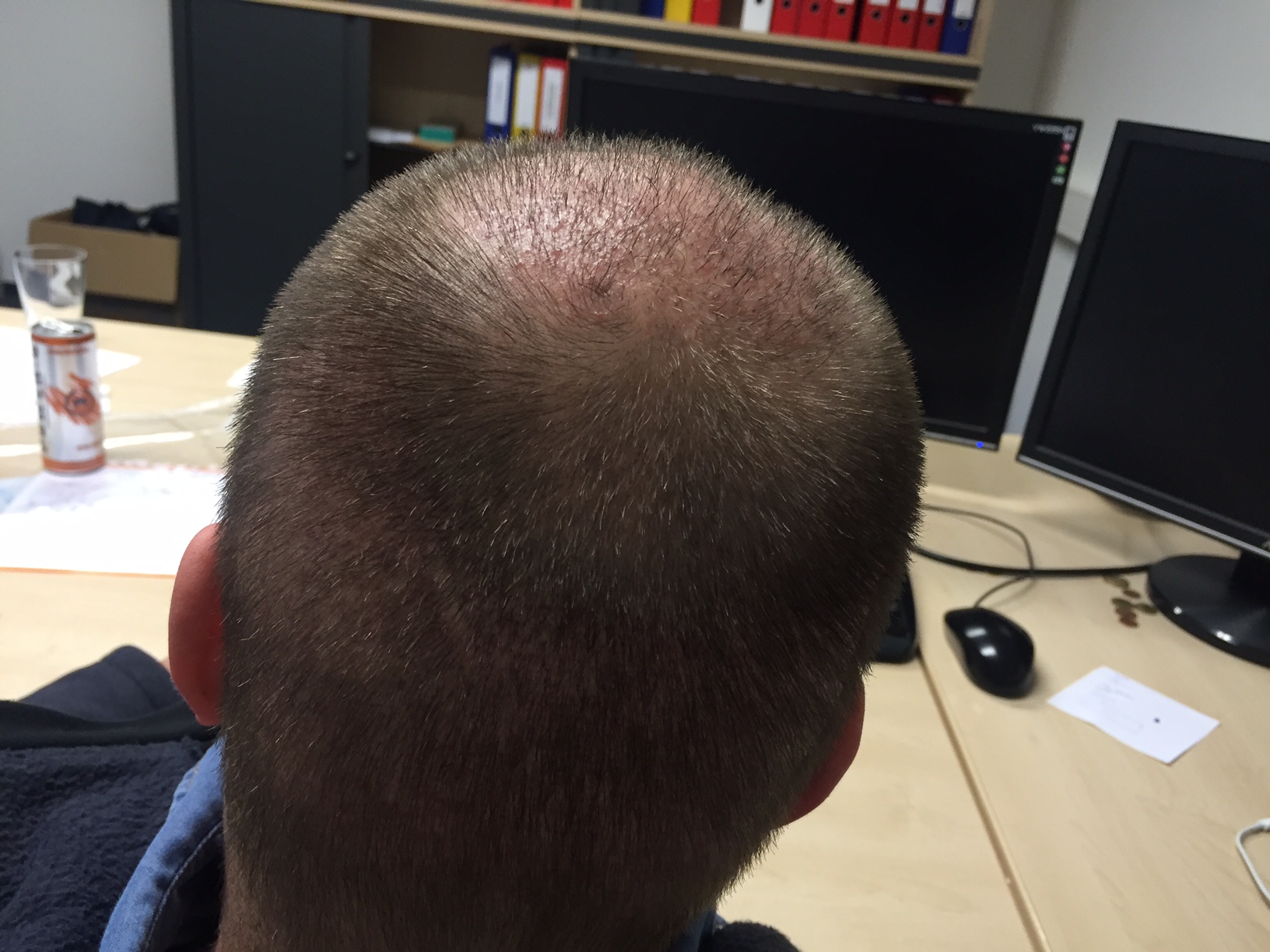 Da ich nach den 2 Ops nun starken haarausfall in der Front hab und mir die lust fehlt weitere Transplantationen zu machen, entschied ich mich die Haare nun kurz zu schneiden.