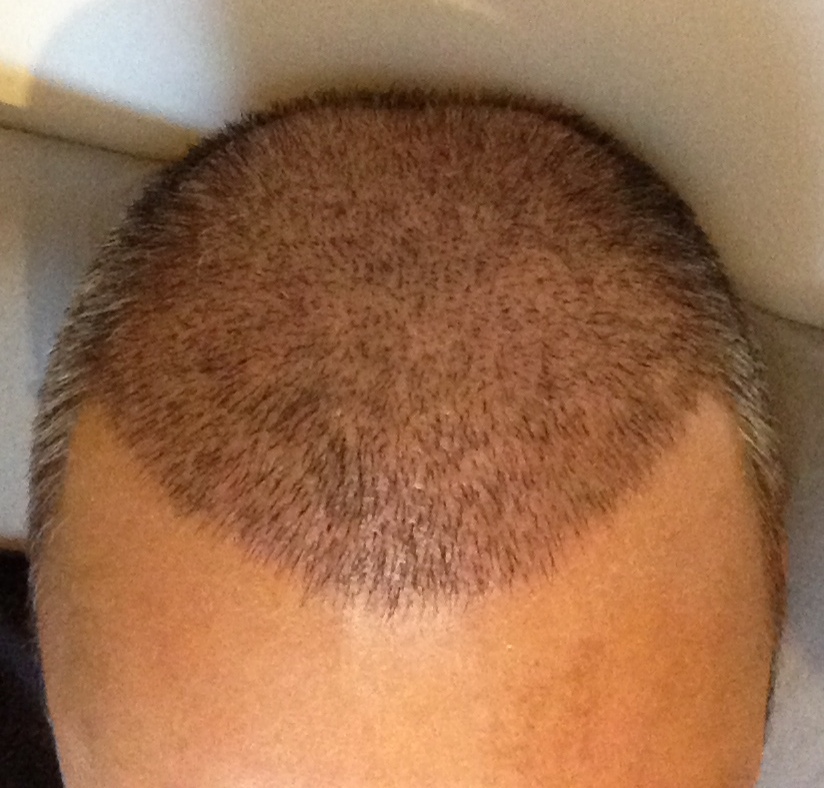 Also ich hatte ja Haare, ich habe mir die Geheimratzecken zumachen lassen und in der Mitte und hinten damit es alles einbisschen Dichter wird.