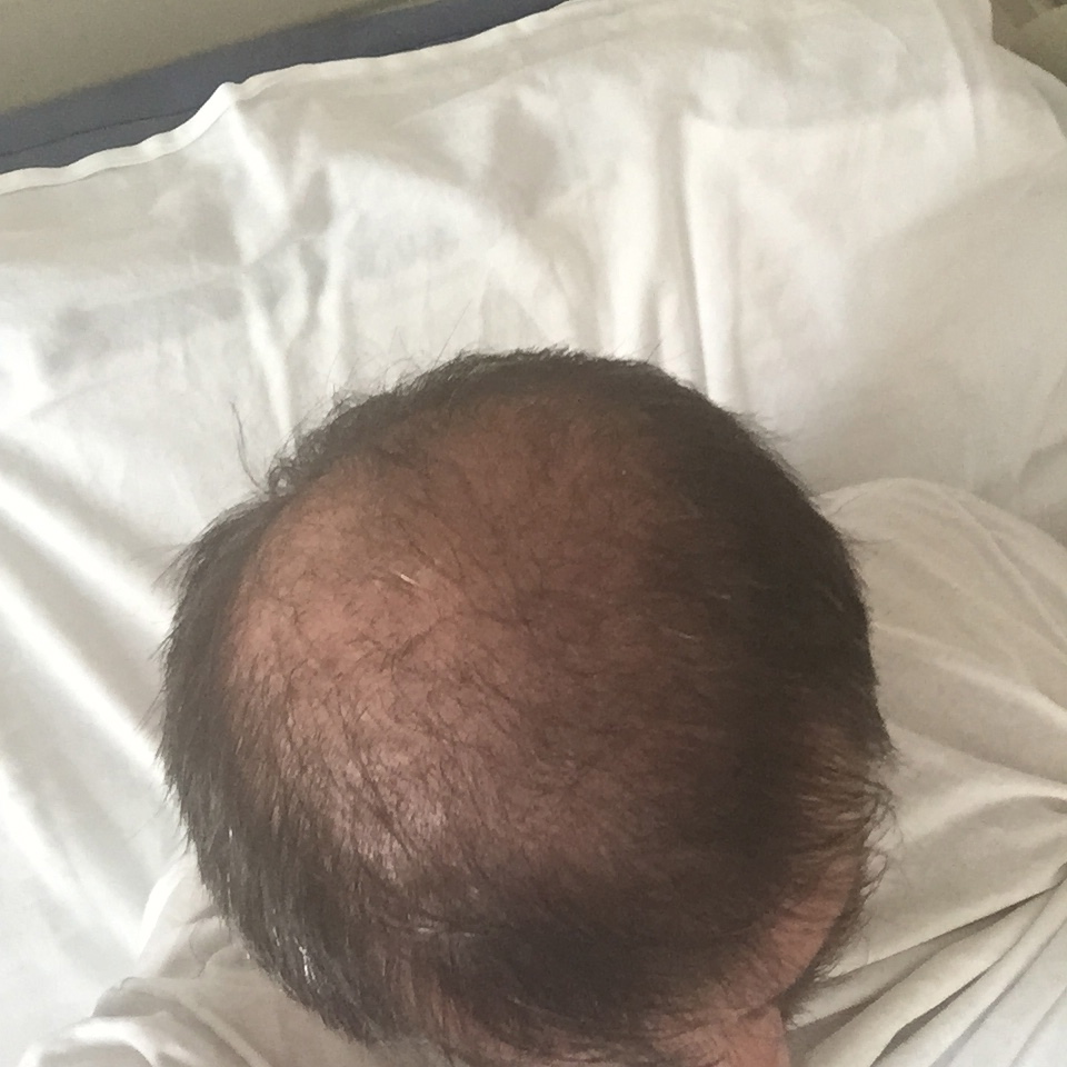 Hattest du mal eine HT? Ist nämlich ungewöhnlich, dass die Haare am Oberkopf nahezu ausgefallen sind und die Haare entlang der Haarlinie noch fast alle vorhanden sind.