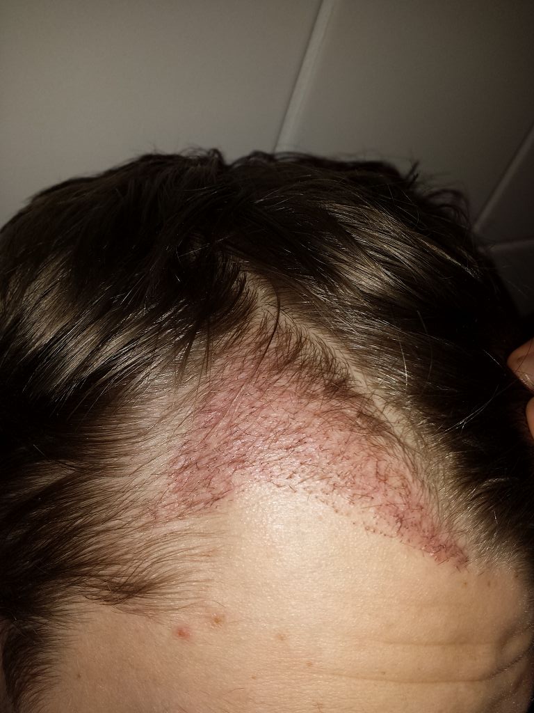 So es sind jetzt 8 Wochen seit der HT vergangen. Die Heilungsphase ist soweit ganz gut verlaufen. Hinten sind die Haare jetzt lang genug, dass man die noch verhandene Rötung nicht mehr sieht und vorne ist es schon deutlich blasser als auf den von mir hochgeladenen Fotos.