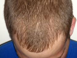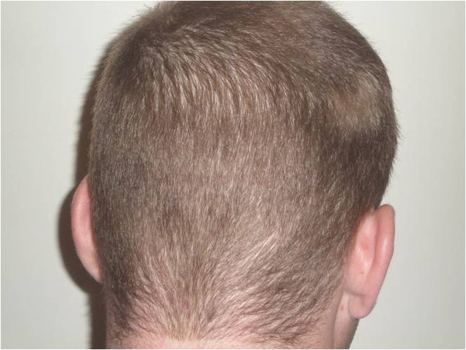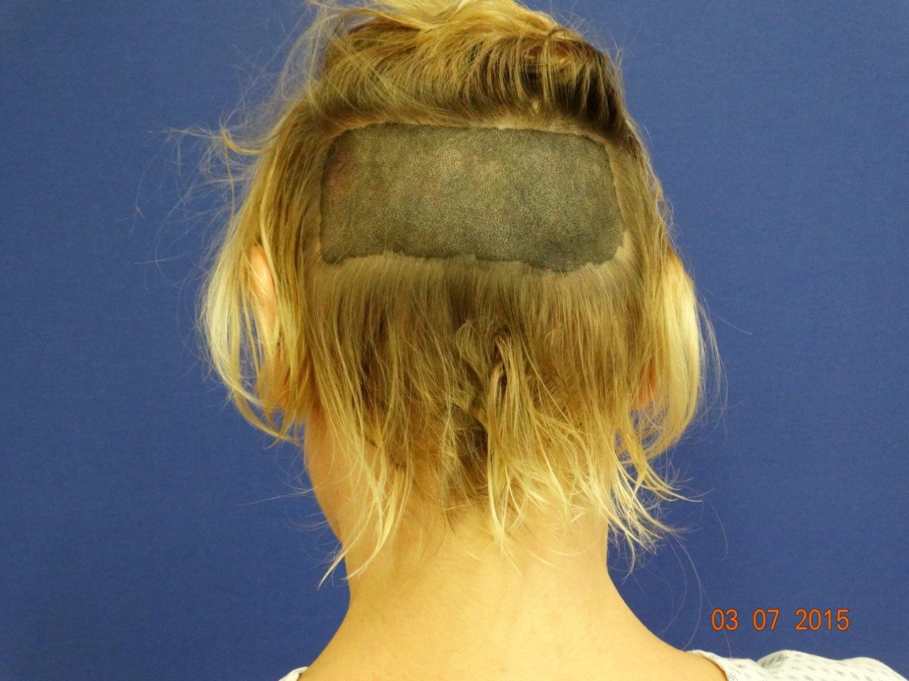 Die Kontrolle der Haarschafft Biegung ist offensichtlich nicht berücksichtigt worden, da die transplantierte Haare komplett abrasiert sind.
