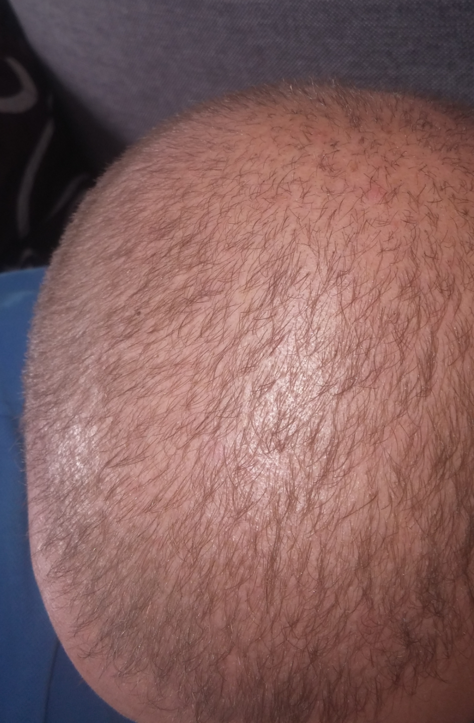 Für eine zweite HT bei dir würde ich anders vorgehen und die Tonsur einfach liegen lassen und mein Augenmerk auf den Bereich ab der Haarlinie nach hinten legen und dort verdichten lassen.