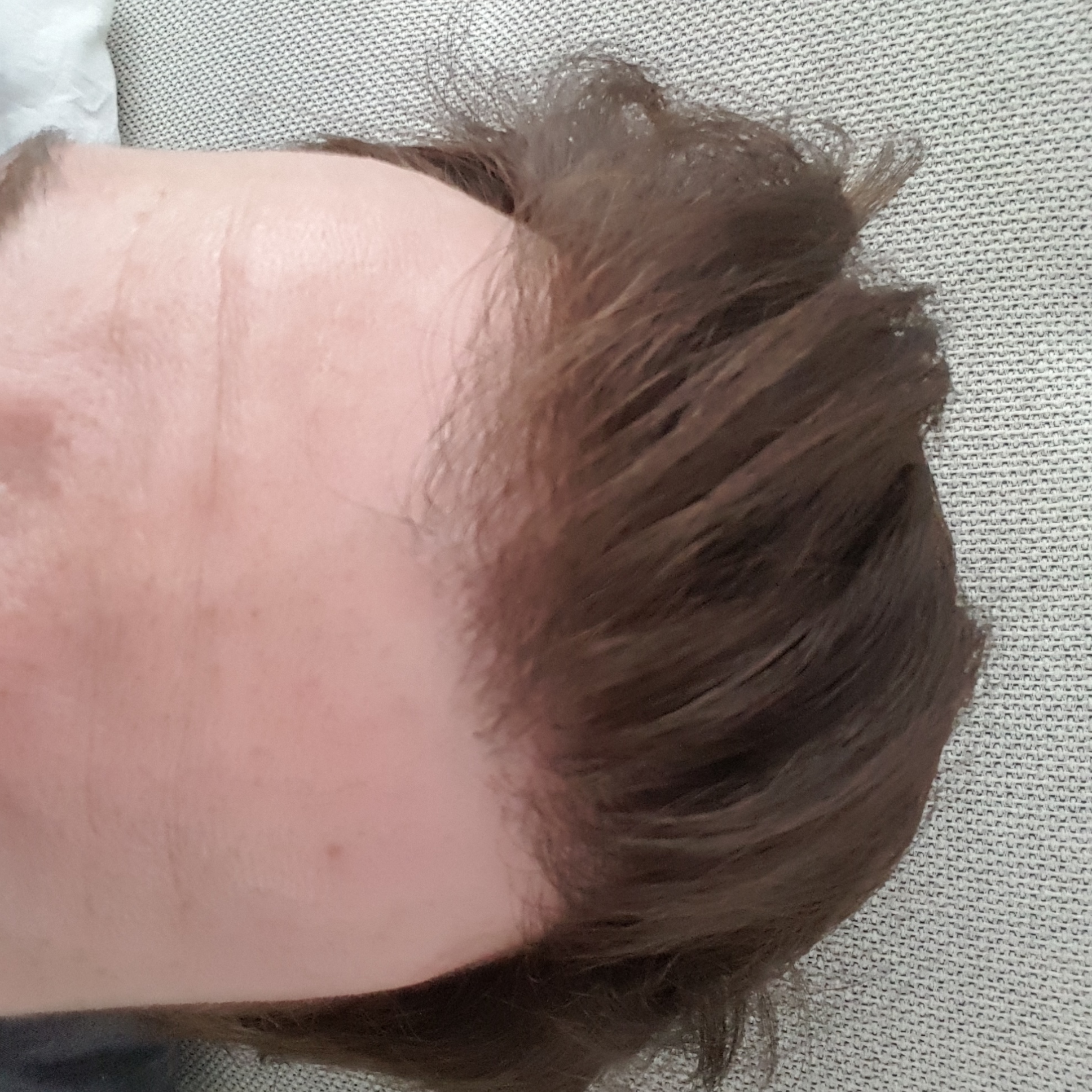 Frage an das Forum: Auch hier sind in der Haarlinie dunkle Punkte genau an der Stelle wo das Haar die Kopfhaut verlässt. Woher kommt das? Daran lassen sich viele Transplantationen speziell bei dunklen Haaren erkennen.