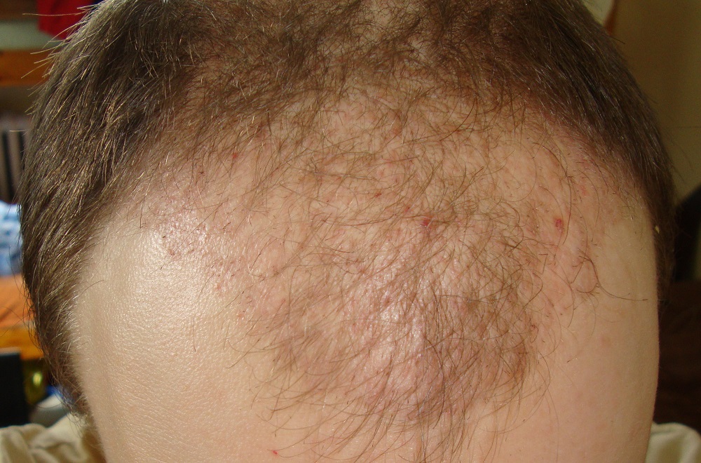 - Haarwachstum nicht gleichmäßig, vorne an den vorher völlig kahlen Stellen kommen mehr Haare ans an den Stellen, an denen vorher noch dünnes Haar war