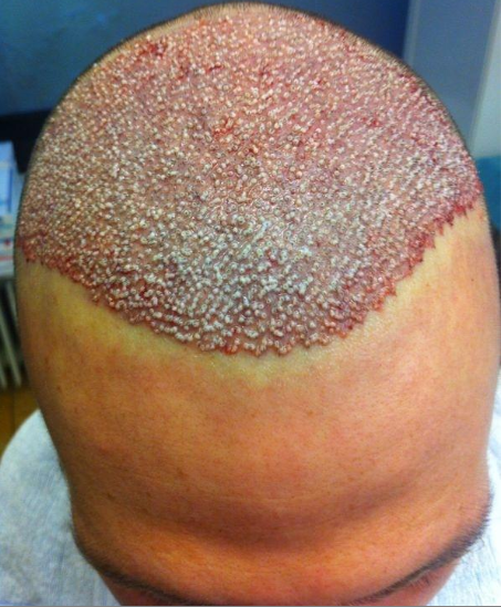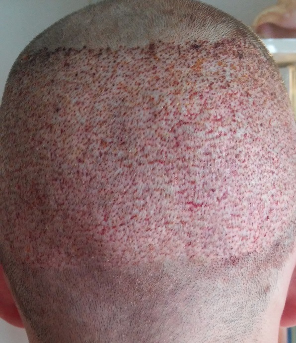 Also das Bild direkt nach der HT sieht nach sehr guter Arbeit aus - meine ein leichtes Setzmuster ähnlich Hasson & Wong zu erkennen, kann mich aber auch täuschen. Ich glaube in der Haarlinie hätte man aber noch dichter setzen können.