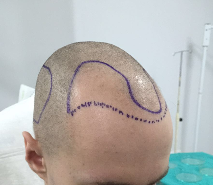 - Seine Haarlinie hat er sehr aggressiv setzen lassen. Ich bin mir absolut sicher, dass die Haarspezialistin ihm eine weitaus konservativere Haarlinie empfohlen hat. Letztendlich war es sicherlich seine Entscheidung. Mir wurde eine mehr oder weniger konservative Haarlinie eingezeichnet. Ich hatte erst bedenken, aber ich habe dann doch der Haarspezialistin vertraut und bin im Nachhinein auch sehr froh über meine Entscheidung. Ich bin wirklich zufrieden mit der Haarlinie.