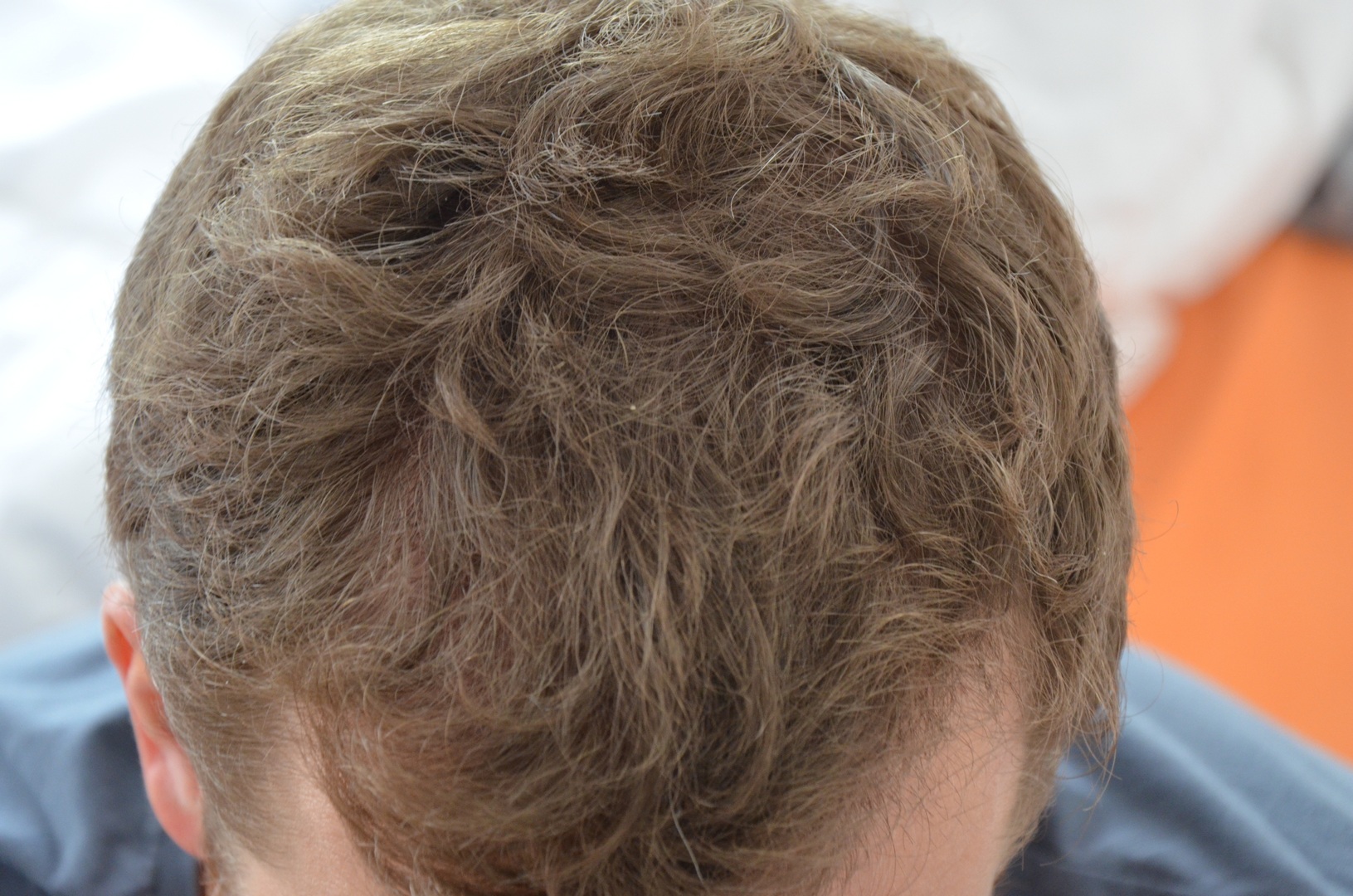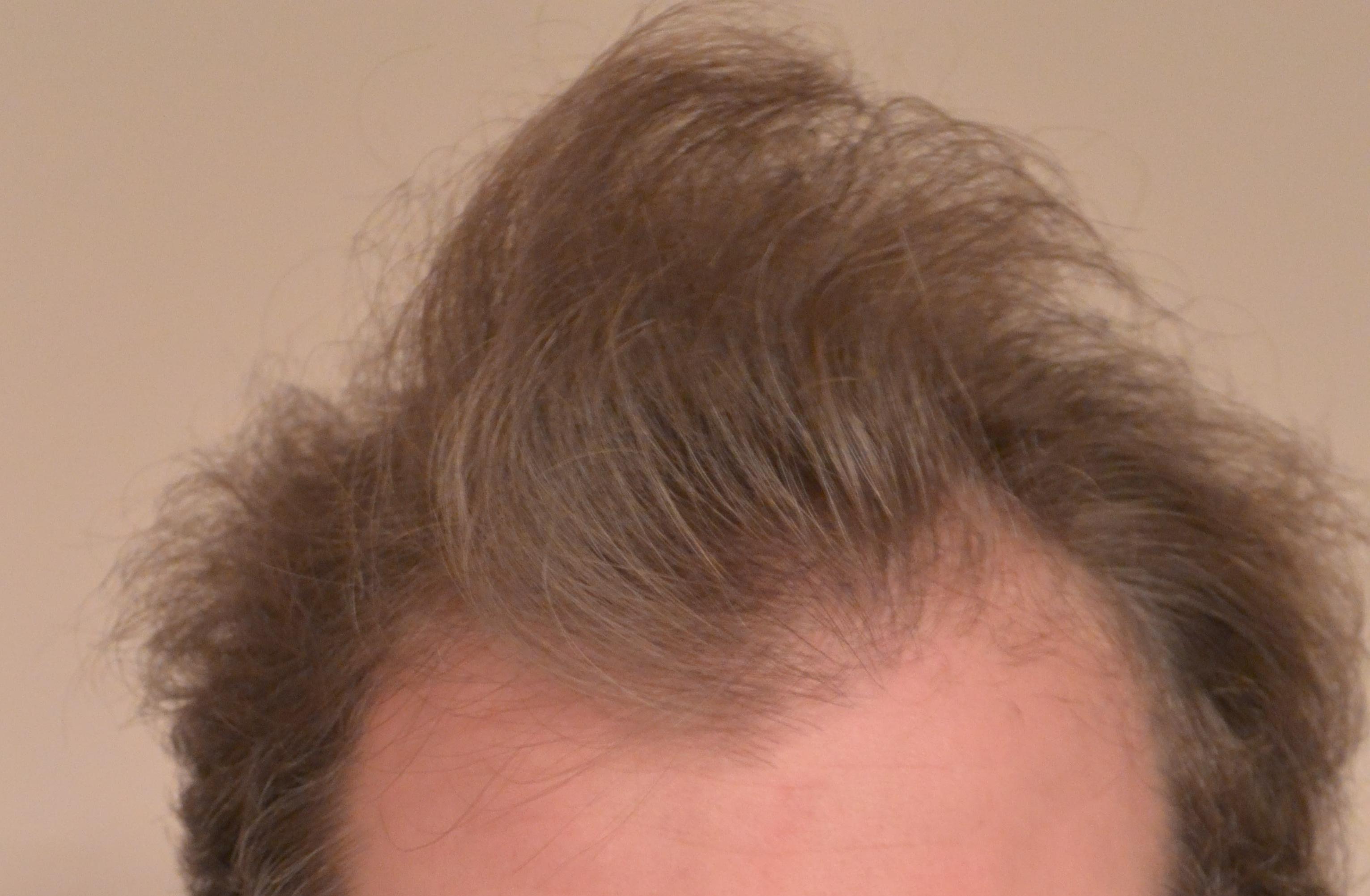 So, 24 Wochen nach der OP schulde ich euch mal einen kleinen Zwischenstand. Lade zwei Fotos von vor der OP hoch und drei neue. Dabei habt ihr den Blick von oben, von vorn und einmal seitlich (mit etwas nassen Haaren) auf die ehemals stärker betroffene Geheimratsecke.