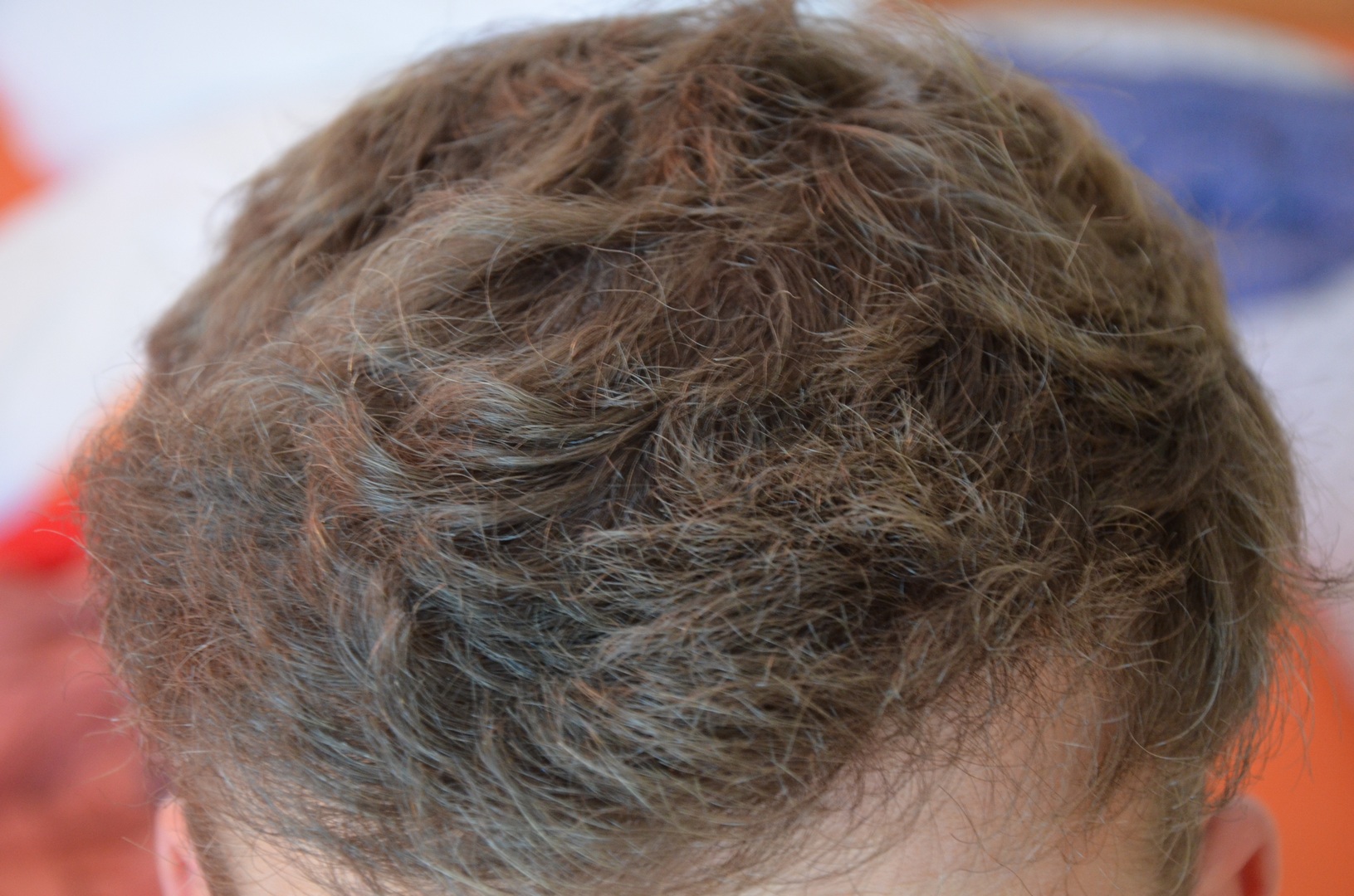 Jetzt sind die Haare recht lang (oben: 5-6cm) und es ist schwierig nach ganz kurzen Haare zu suchen, die jetzt erst neu sprießen. Vielleicht muss ich die Tage mal auf drei Zentimeter runter, um das besser beurteilen zu können.