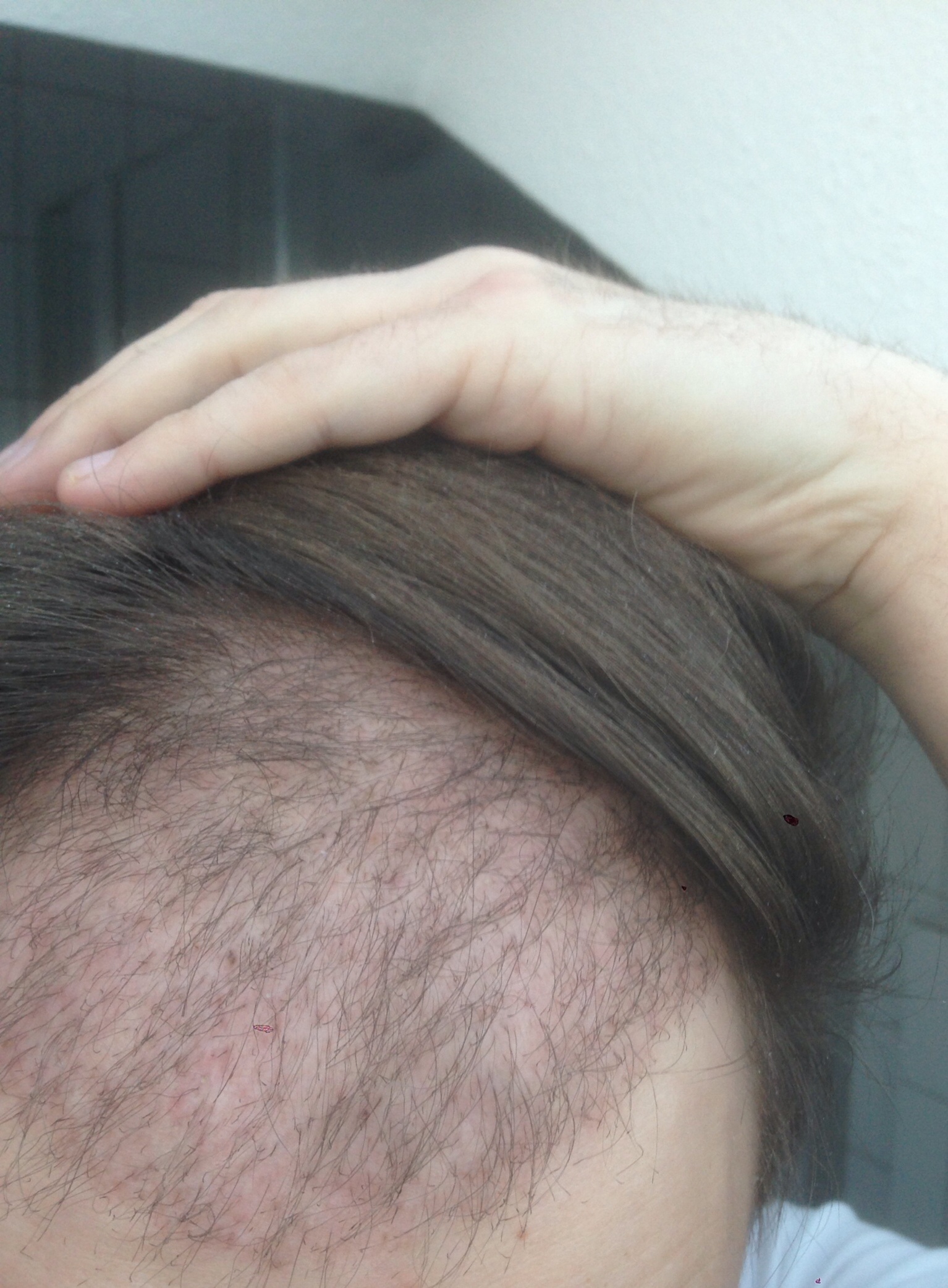 Krusten usw sind soweit ab. Haare noch fast alle da, paar waren natürlich beim Krustenlösen schon dabei.