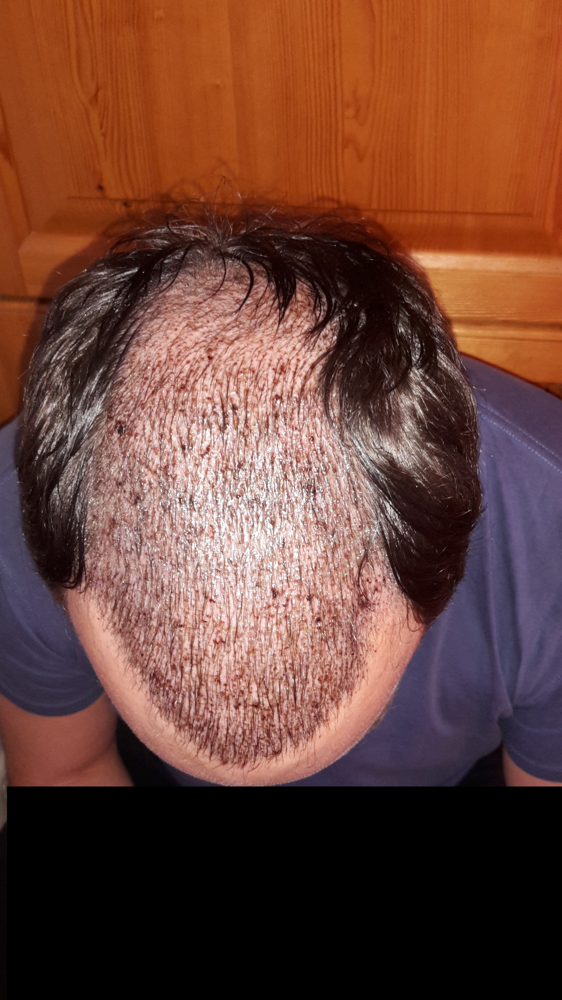 Meine Freundin hat mir am Tag 12 (30.12) die Klammern entfernt. So froh ich bin das die Dinger draußen sind, so schmerzhaft war es teilweise. Insgesamt waren es 52 Teufelskerlchen, ein paar gingen echt gut und ohne Schmerzen raus. Der Rest war sehr unangenehm. Vor allem wenn der ganze Hinterkopf schon schmerzt und dann sind immer noch 20 Klammern drin Sad. Die Haare habe ich mir direkt danach auf 0,7 mm rasiert.