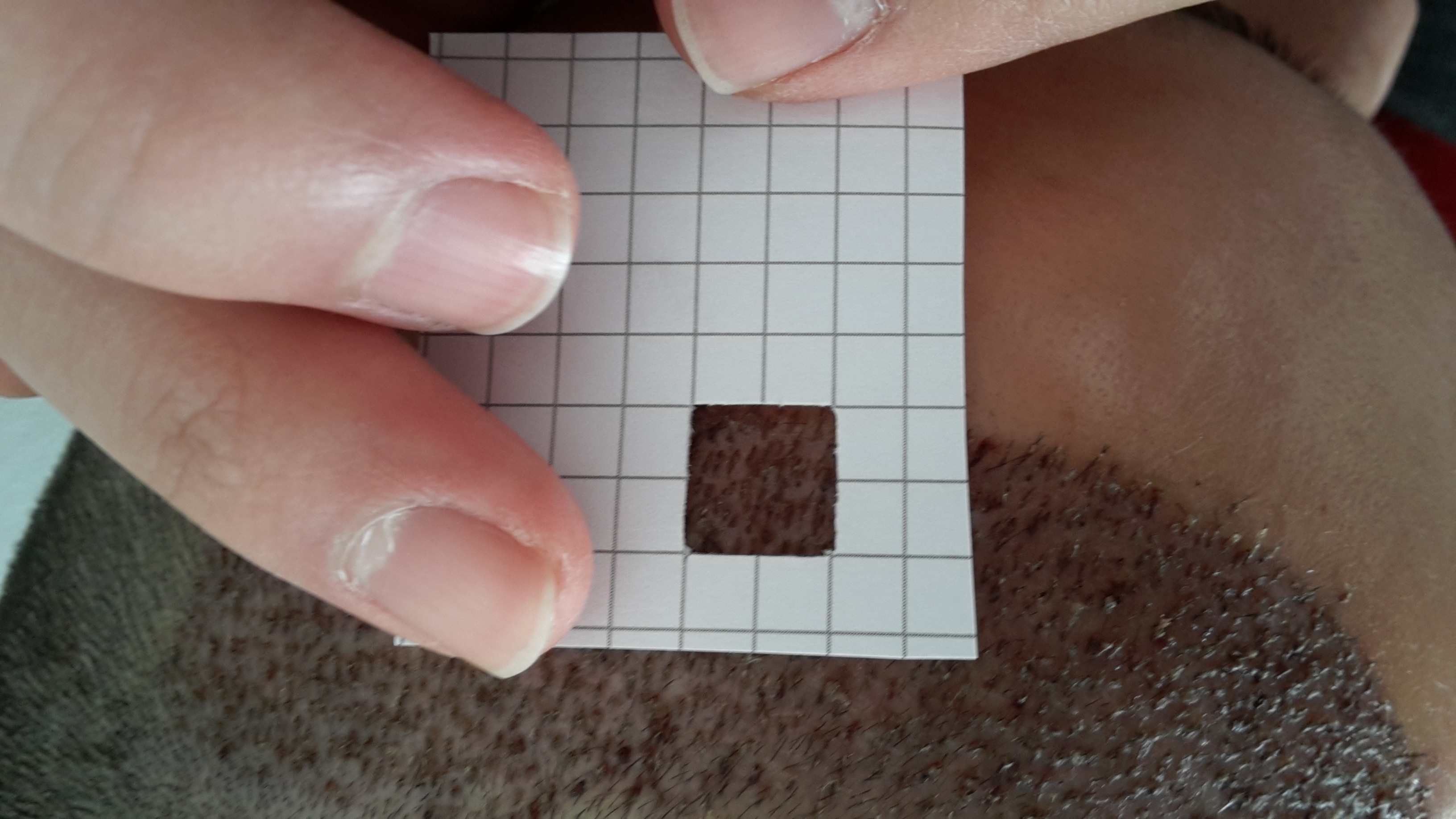 Blatt Papier nehmen und vier Kästen ausschneiden , auf den Kopf legen und die Graft zählen im ausgeschnitten Bereich.