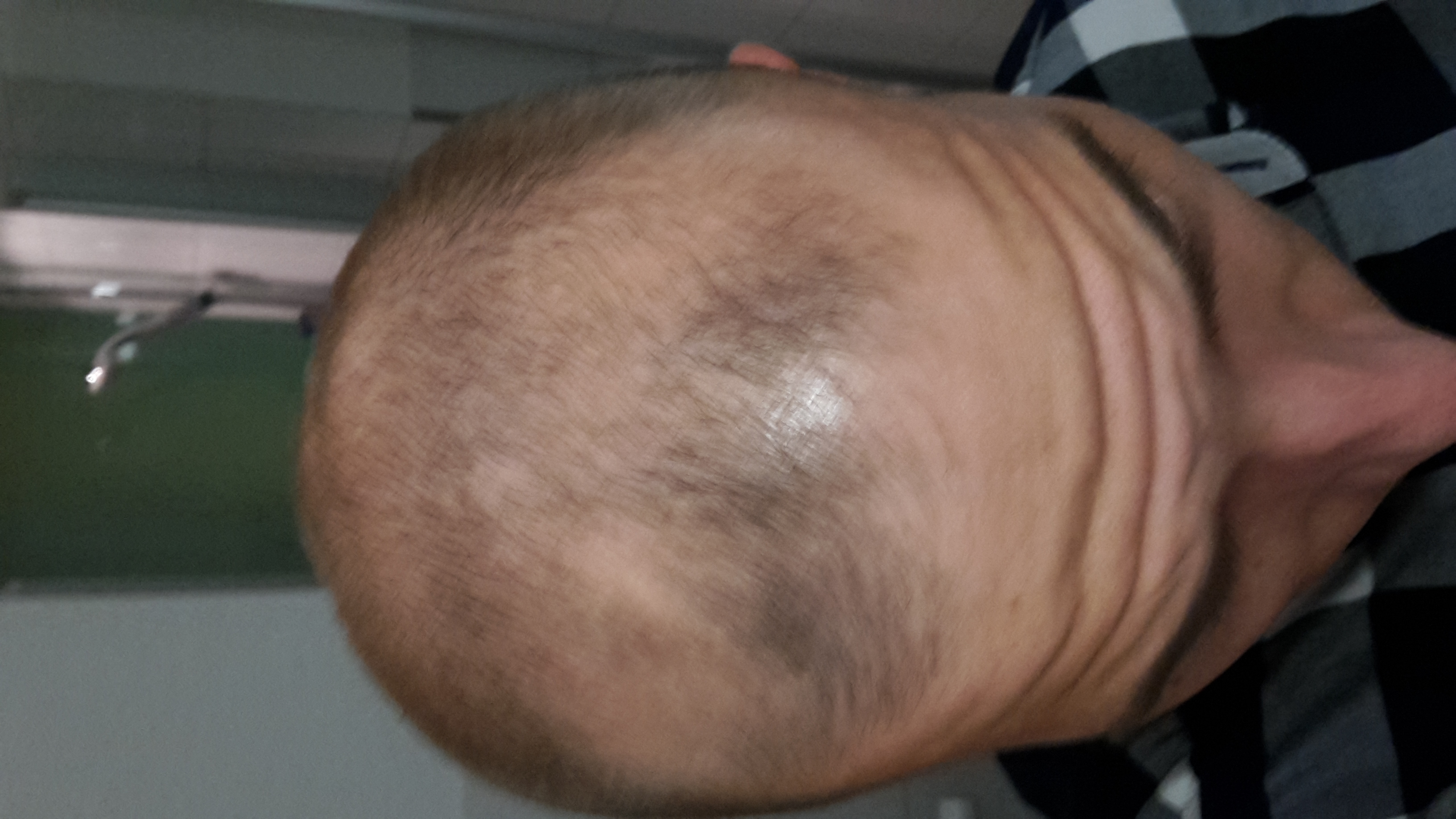 Hier ist, meiner Meinung nach, ein typisches AGA- Muster zu sehen mit GHE und Tonsur!