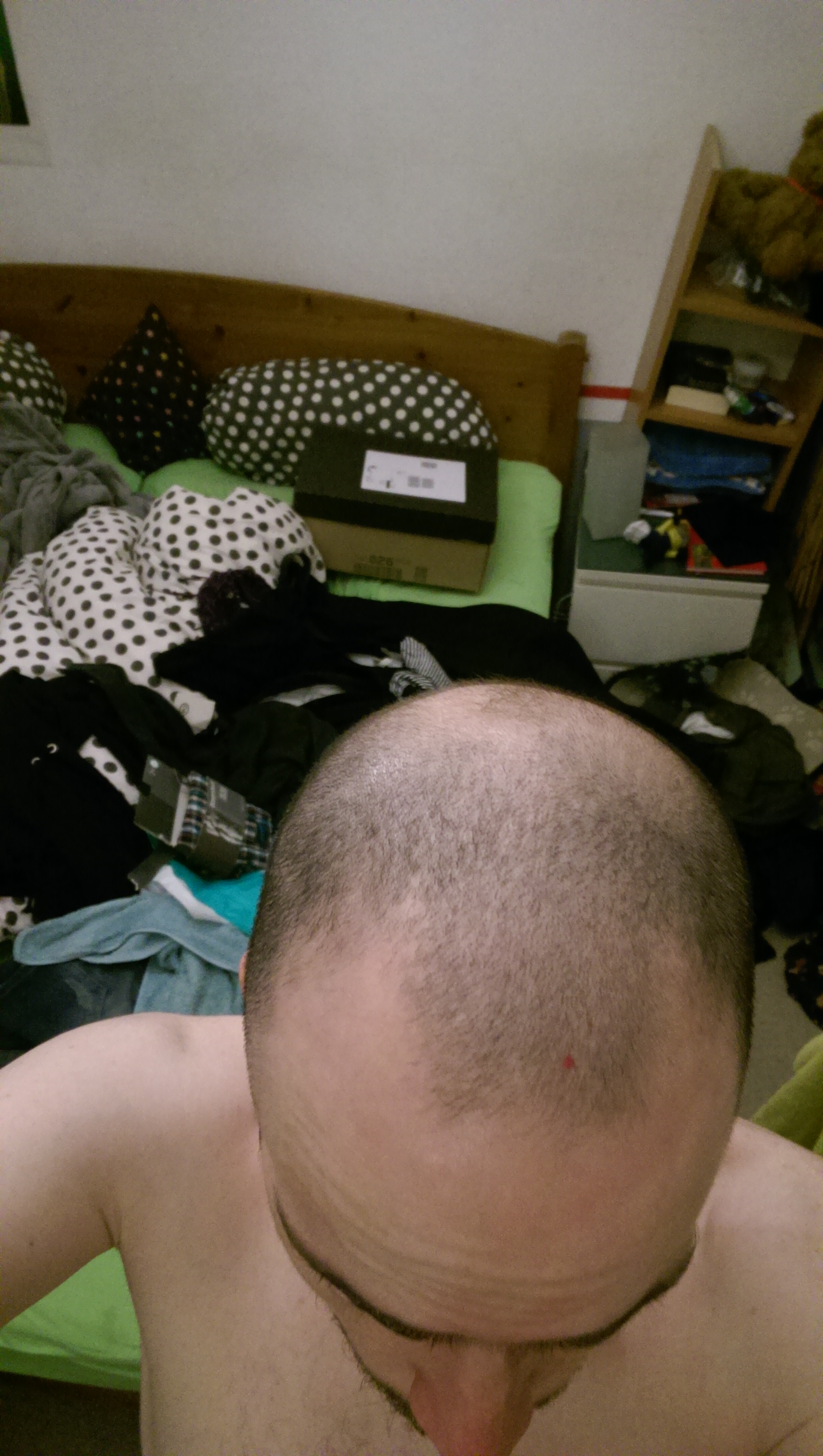 Mhh ne, das meinte ich anders. Mir macht es nichts aus, wenn vorne der geheime Rat tagt, also brauch nicht vorne wieder unbedingt eine Haarlinie wie mit 18, die Fläche würde ich sozusagen sparen. Ich würde meine Haare sehr gerne wieder länger tragen.