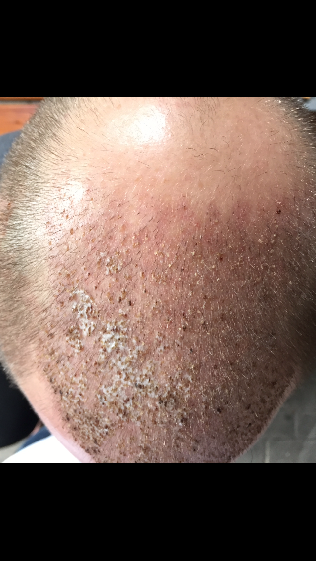 * Haarstatus in der Familie:Eltern "normal", Großvater (väterlichers.) NW5 seit er 40 war.